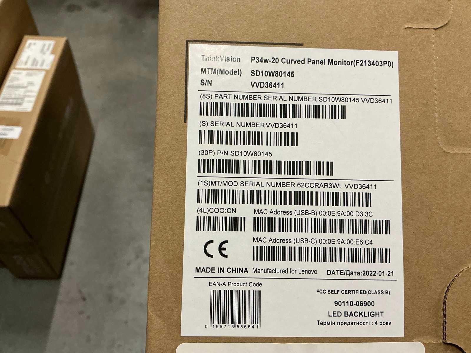 Lenovo thinkvision p34w-20 curved panel monitor