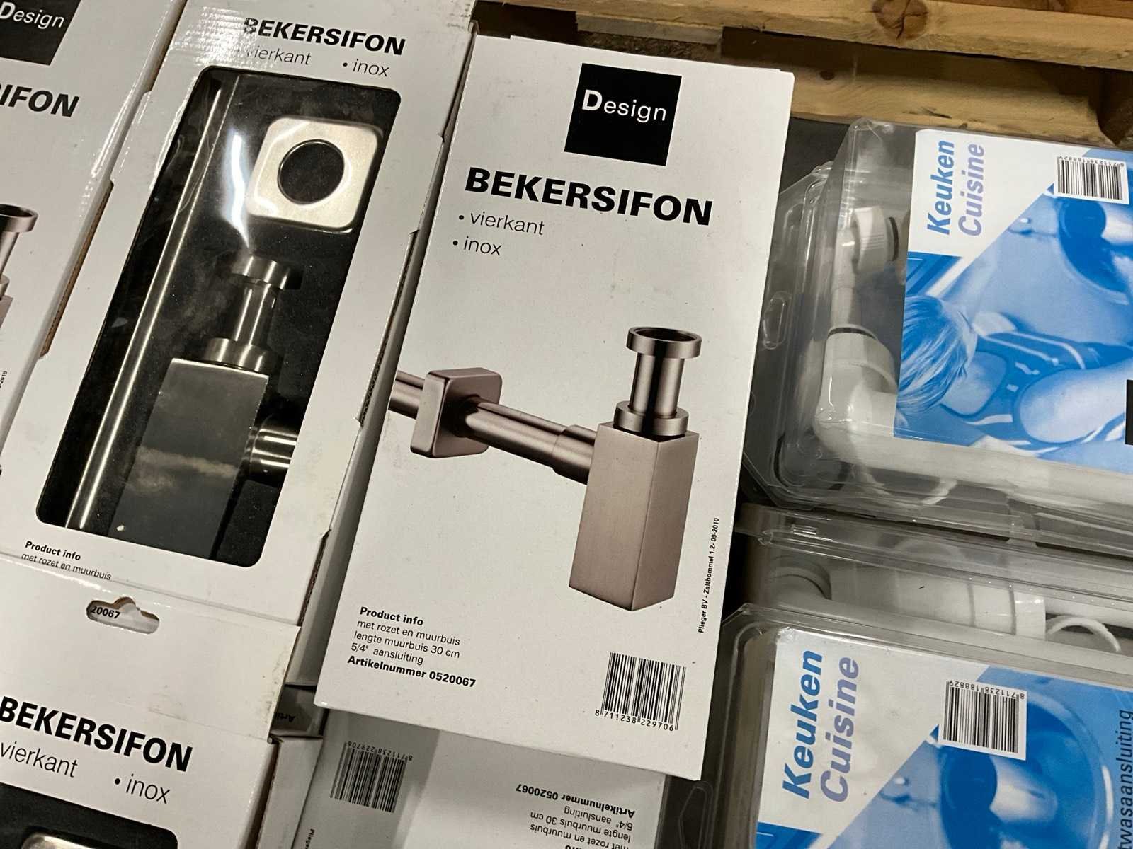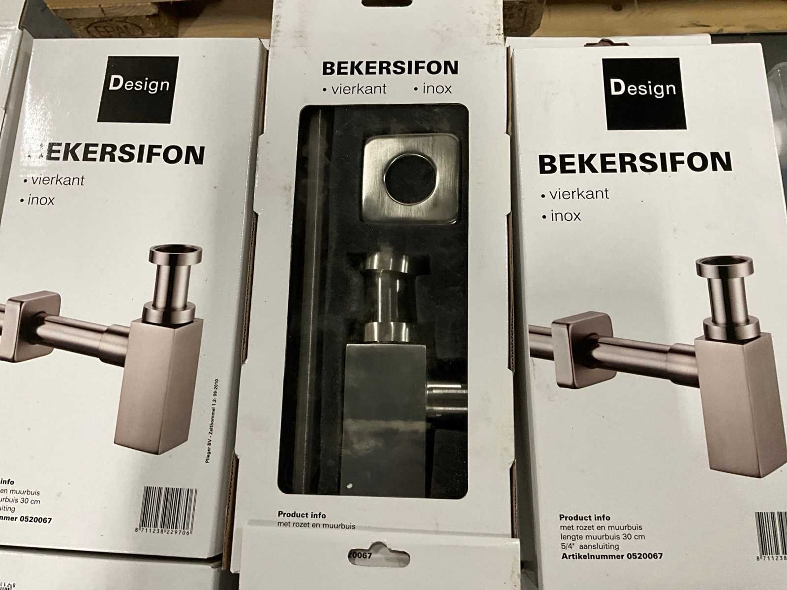 Bestaande uit: 39x Design bekersifon inox vierkant en 11x Plieger Duplosifon 6/4 met vaatwasaansluiting