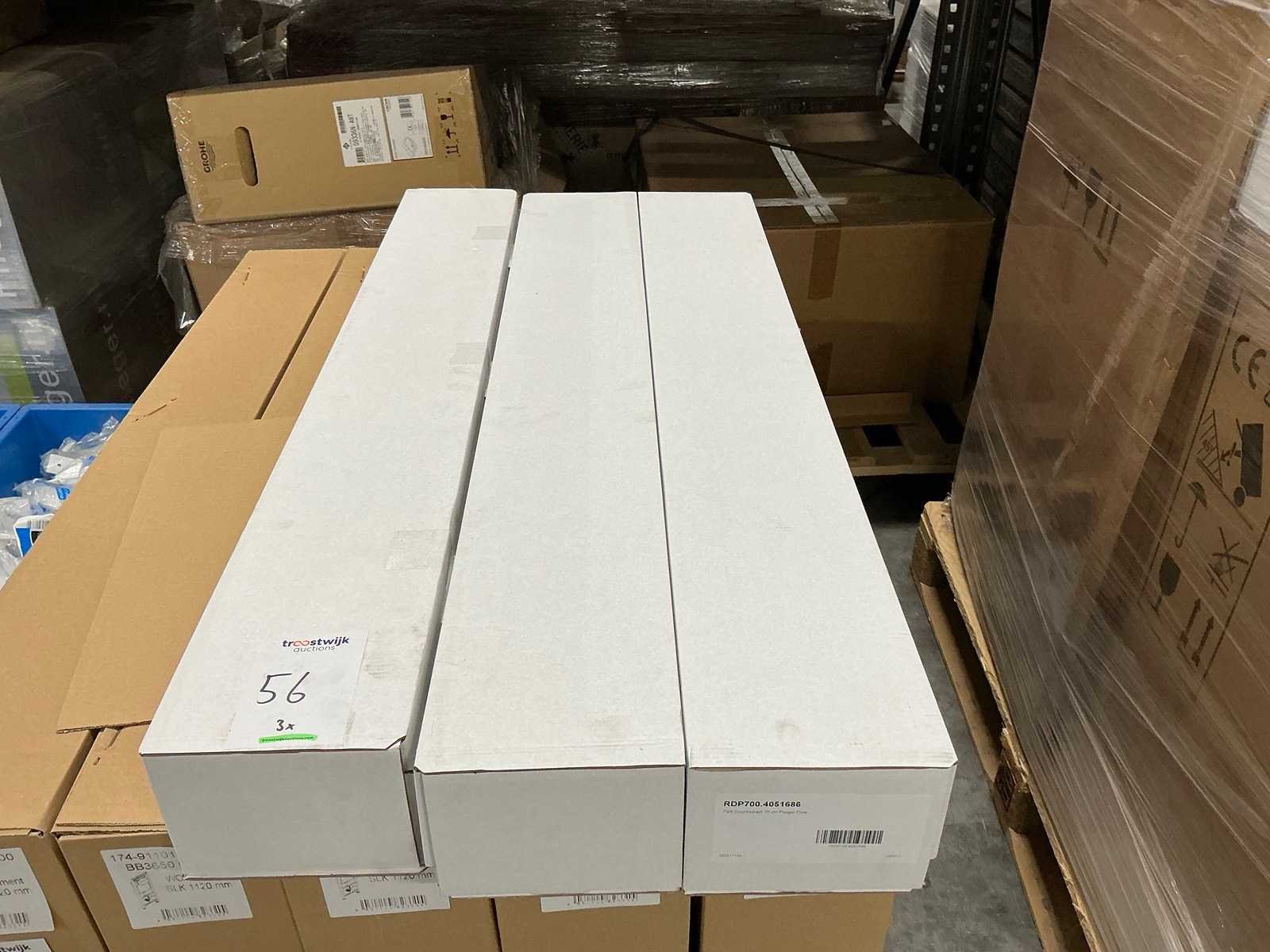 3x Plieger Flow douchegoot van rvs. Merk: Plieger Model: Flow Lengte: 70cm Breedte: 16cm Hoogte: 12cm