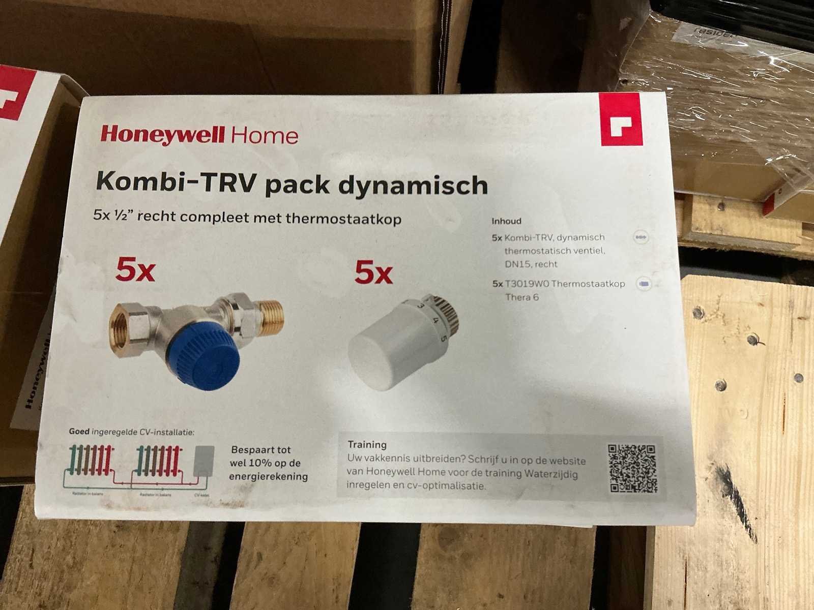 6x doos van 5st; 5x Kombi-TRV, dynamisch thermostatisch ventiel, DN15, recht 5x Thermostaatknop Thera 6 T3019WO Merk: Honeywell Home