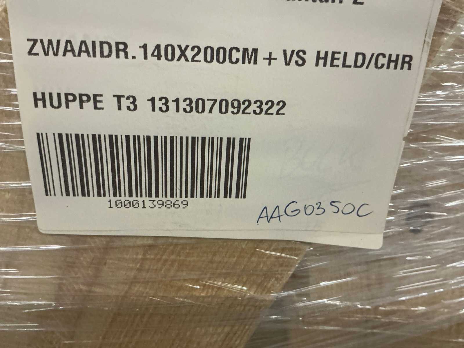 Hüppe T3 zwaaideur m. vast segment; Bestaande uit 2x doos: chroom/helderglas Merk: Huppe Model: NVE X1B Flex 4-Eck 140x200cm Breedte: 140cm Hoogte: 200cm
