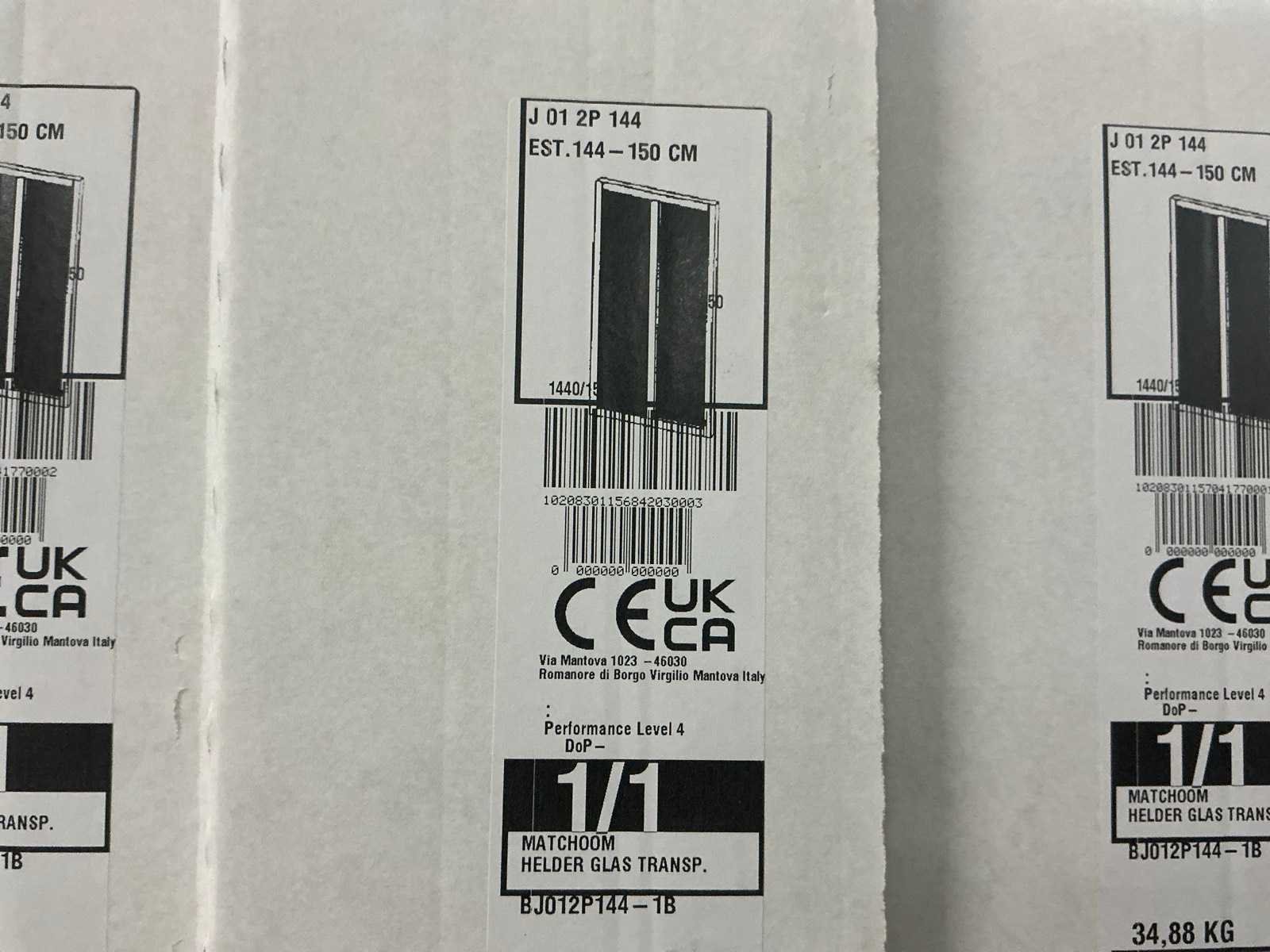 Matchroom/helderglas transp Model: Gabbia J 01 2P 144 Lengte: 144cm Hoogte: 200cm
