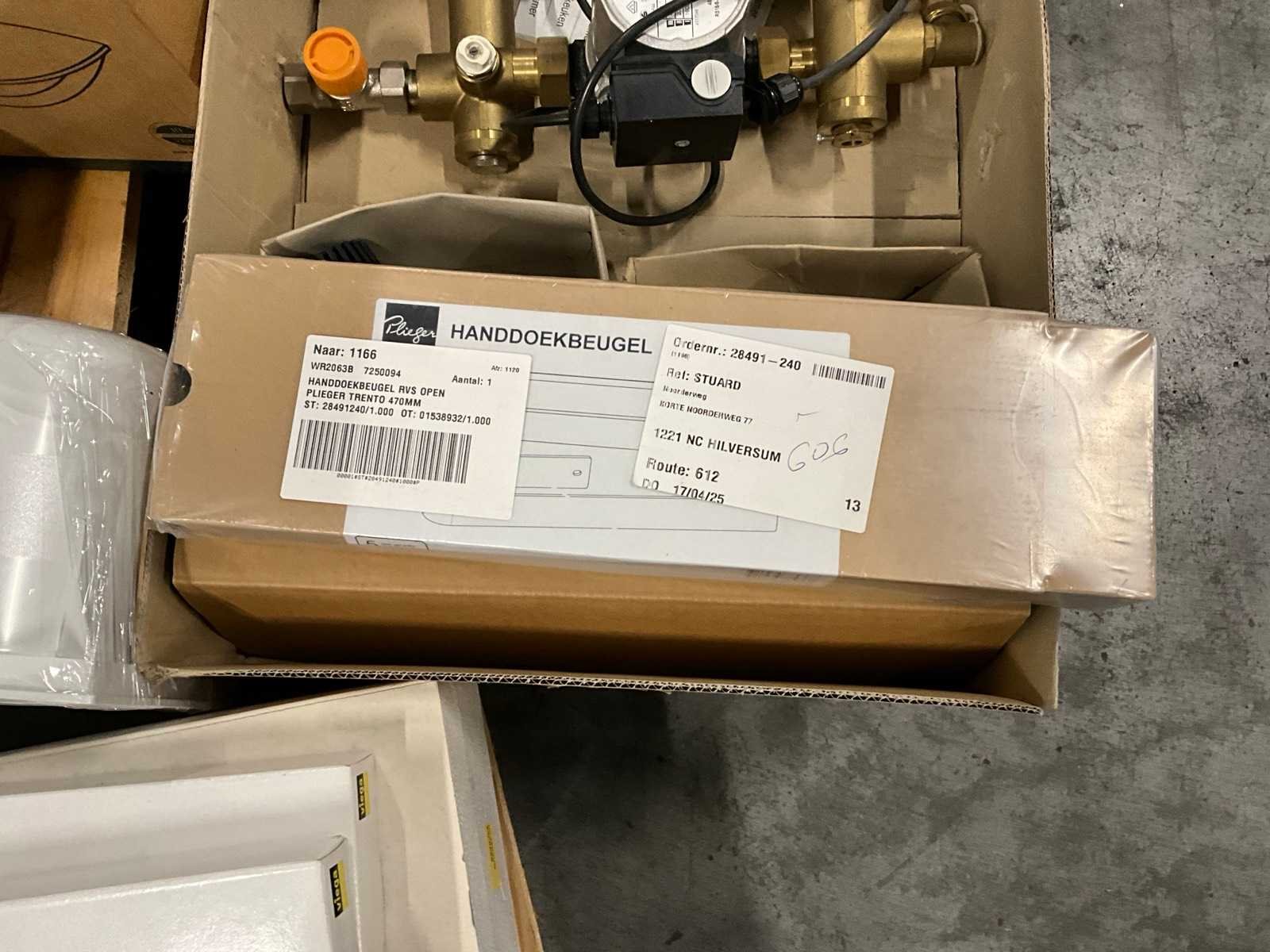 Bestaande uit onderandere: wc bril, thermostaat knop radiator, handdoekbeugel, aansluitsets radiatoren en boiler