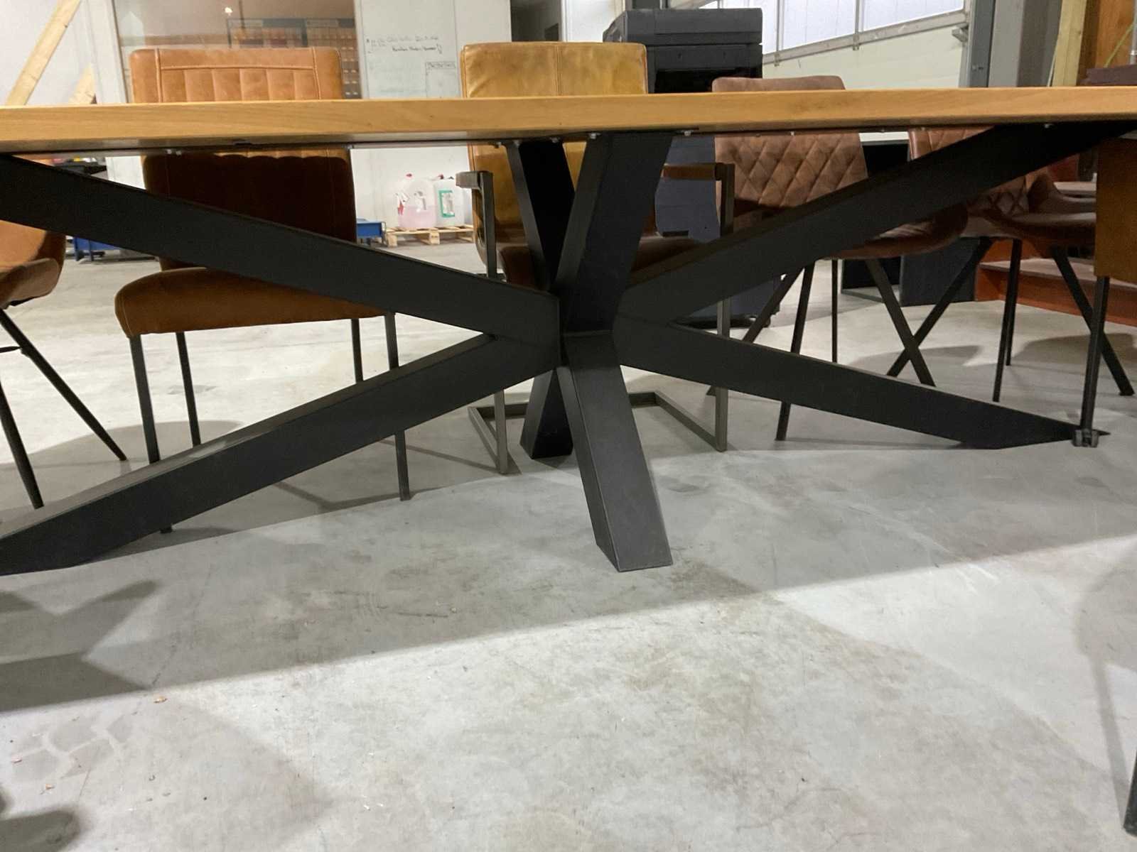 Bestaande uit tafel 350x110x75 cm met 11 stoelen.