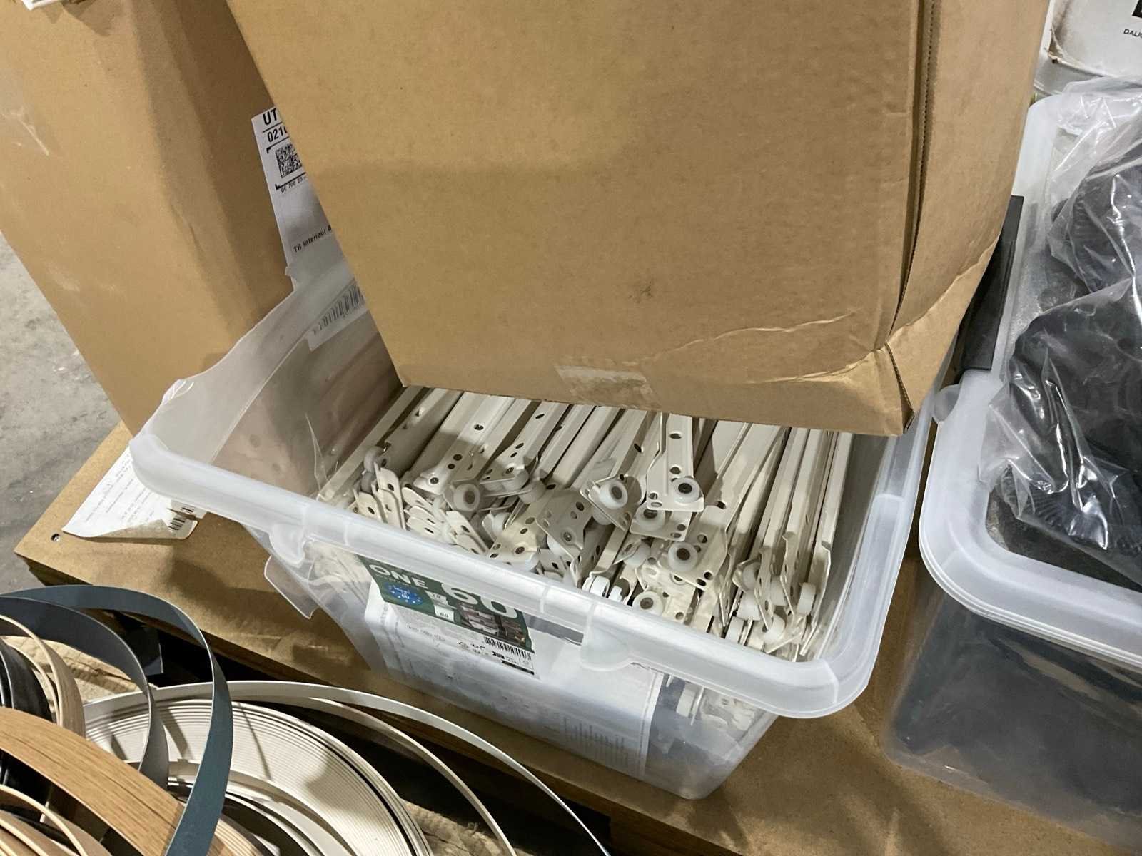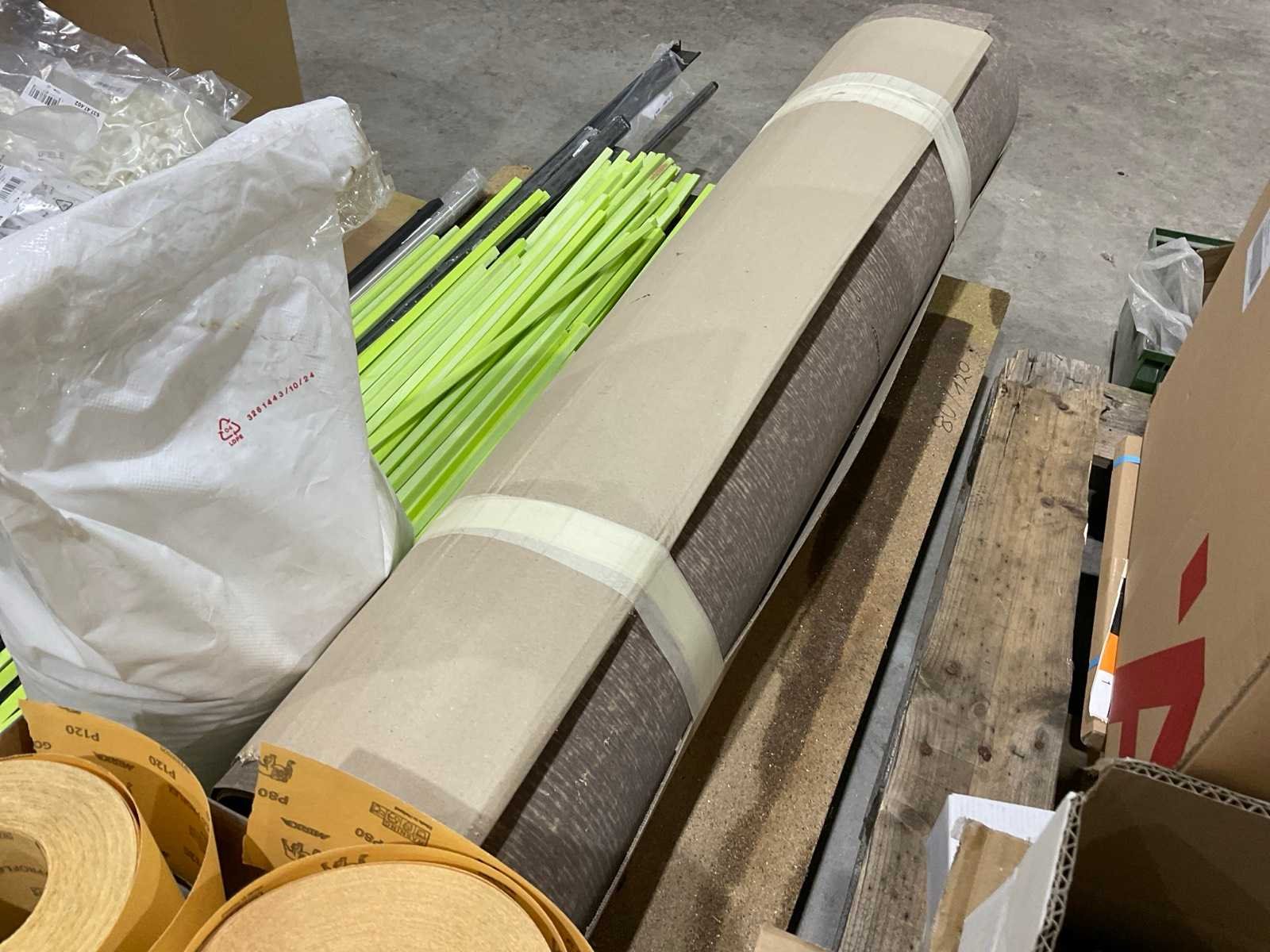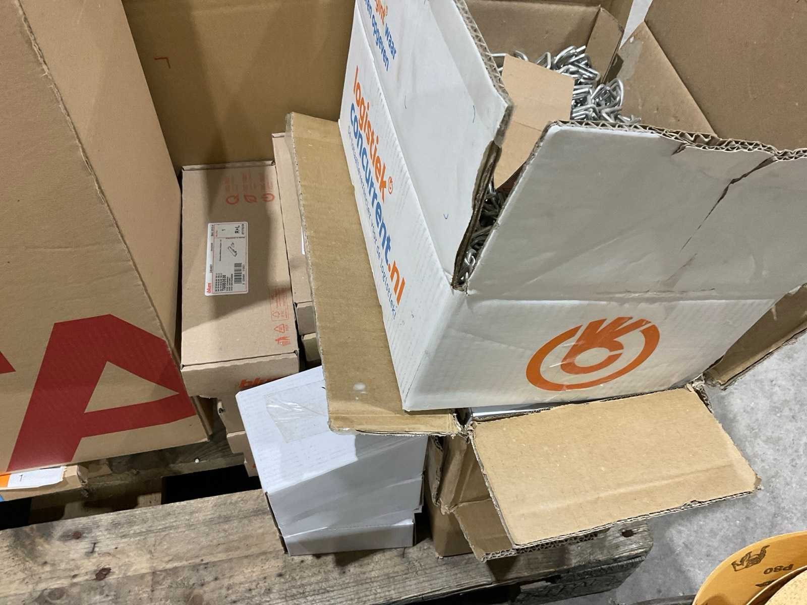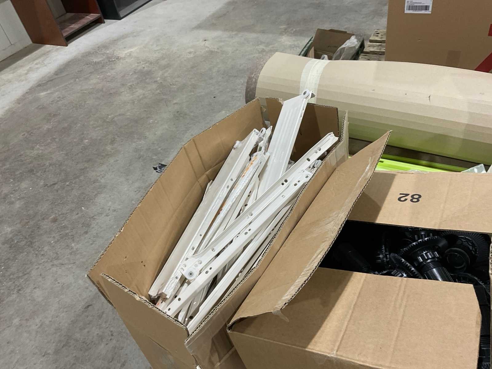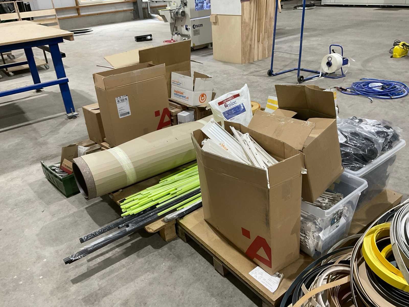 Bestaande uit onder andere: schappen rails, verstel stukken, lade rails, schuurpapier, ketting, schroeven, mondmaskers,