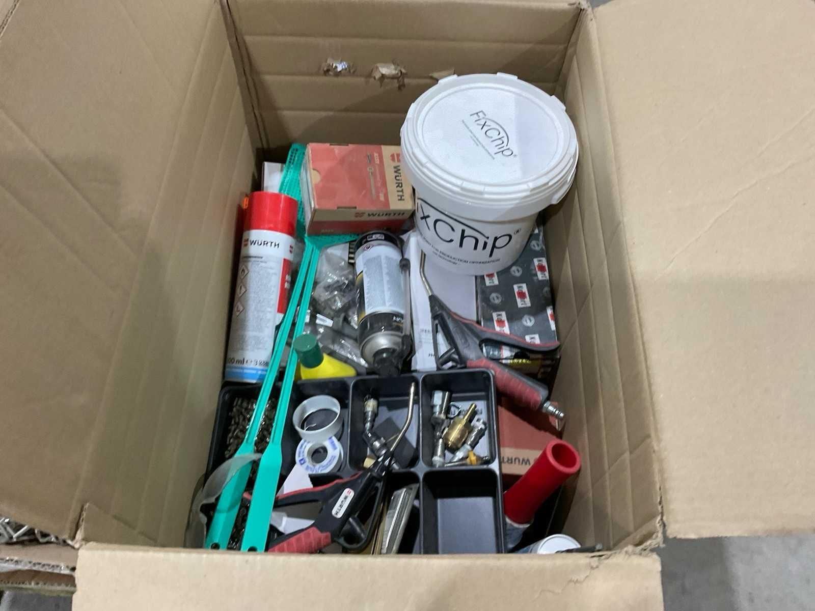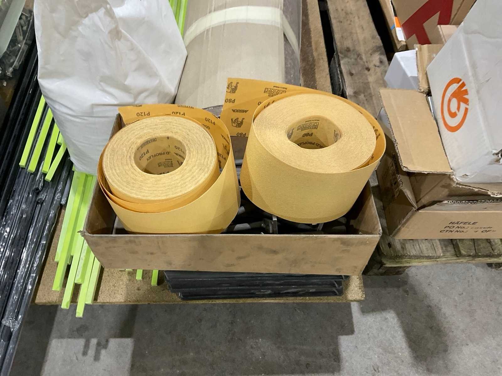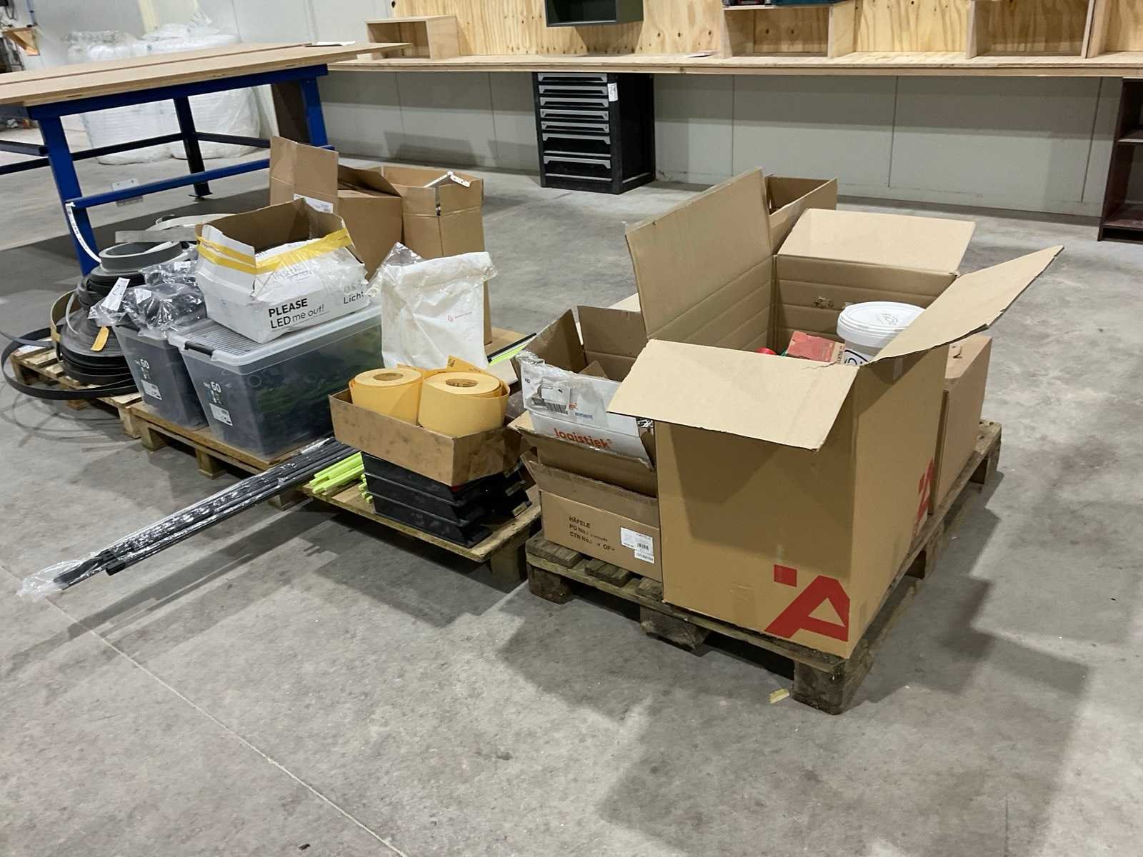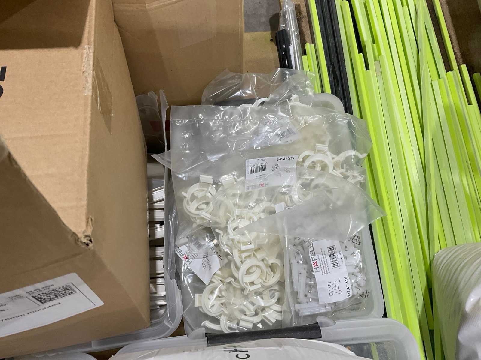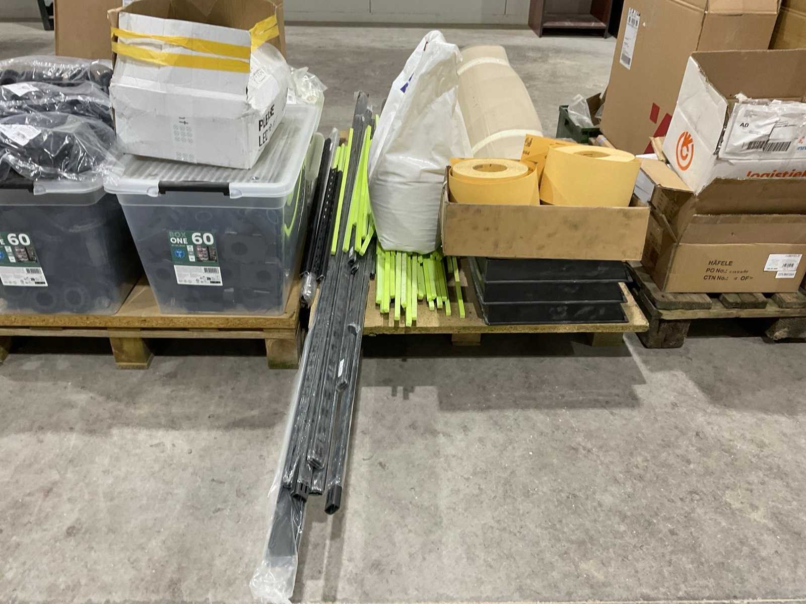 Bestaande uit onder andere: schappen rails, verstel stukken, lade rails, schuurpapier, ketting, schroeven, mondmaskers,