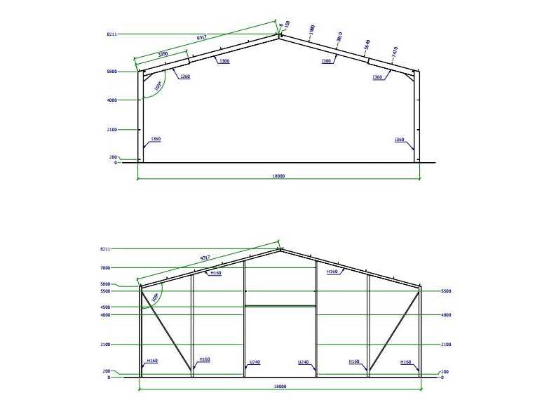 Dakhelling 15 graden Constructie bestaat uit: 5 Tussenspanten: 2 x kolom I360 en de eerste 3,20 mtr van de dakligger I360 en de rest van de dakligger I300 2 Eindspanten: 2 x hoekkolom H160, 2 x dakligger H160, 2 x tussenkolom H160, 2 x tussenkolom U240 en 1 x deurbalk U240 á 5,00mtr. 26 Koppelbuizen 70 x 70 x 3mm 28 Windverband rond 20mm. met spanner m20 Gepoedercoat RAL7016 Schroeven 8.8 Met NEN 1090 CE Markering Certificaat. Kavel wordt met een heftruck gratis geladen Materiaal: staal gepoedercoat Bouwjaar: 2026 Goot hoogte: 5800mm Nok hoogte: 8211mm Totale afmeting L: 30000mm Totale afmeting Breedte: 18000mm