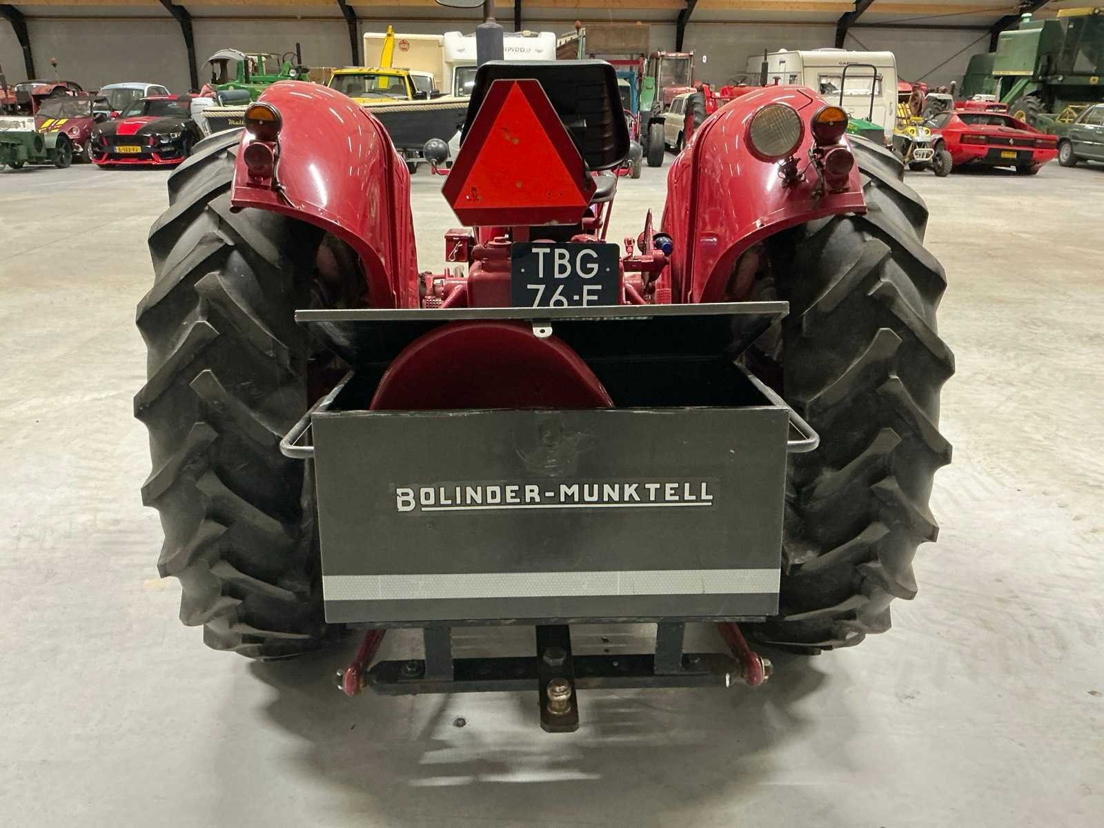 Type: 3-cilinder diesel, Inhoud: circa 3.8 liter, Vermogen: circa 35 pk, Koeling: Watergekoeld, Inspuiting: Mechanische lijnpomp. Inclusief: hydraulische topstang, boventrekhaak, originele stoel. Merk: Bolinder-munktell Type: BM350 Serienummer: 29468 Kenteken: TBG-76-F Afgelezen urenstand: 546 Versnellingsbaktype: Handgeschakeld Bandenmaat voor: 7,50-18 Bandenmaat achter: 15,5-38 Eigen gewicht: 4050kg Totale afmeting L: 3600mm Totale afmeting Breedte: 1950mm Totale afmeting Hoogte: 2350mm Datum eerste toelating: 1965-06-30