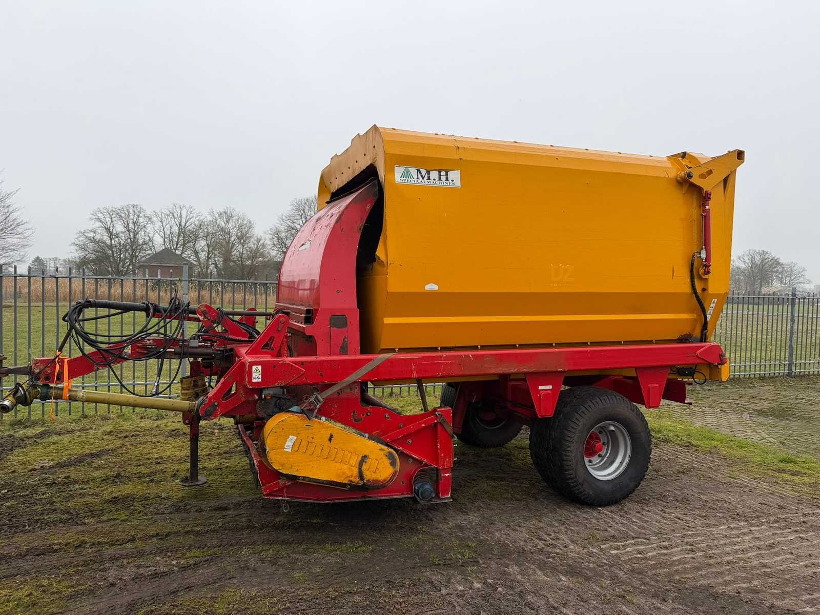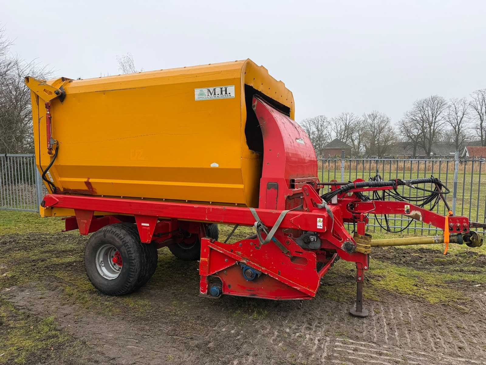 MH-laadcombinatie; bouwjaar 2016; maaibreedte 190 cm.; 12 m3 inhoud; Aftakas aangedreven; hydraulisch geremd; nl. kenteken. Merk: MH Type: ML-190-12K Bouwjaar: 2016 Serienummer: 36016007 Kenteken: LHH-59-N