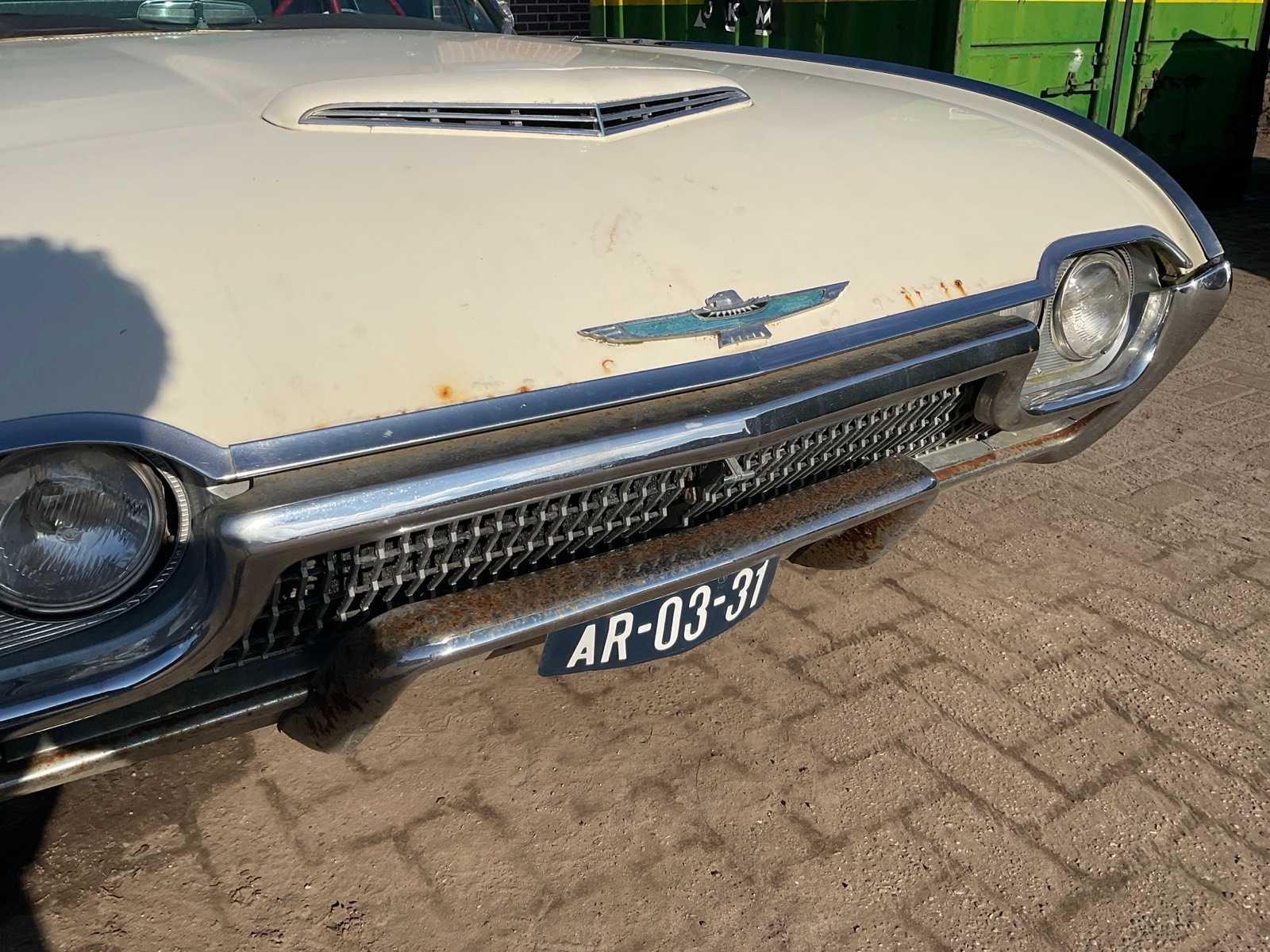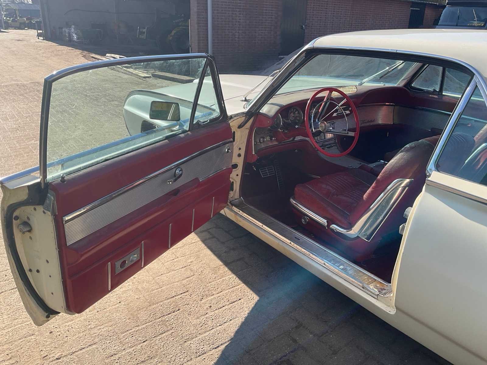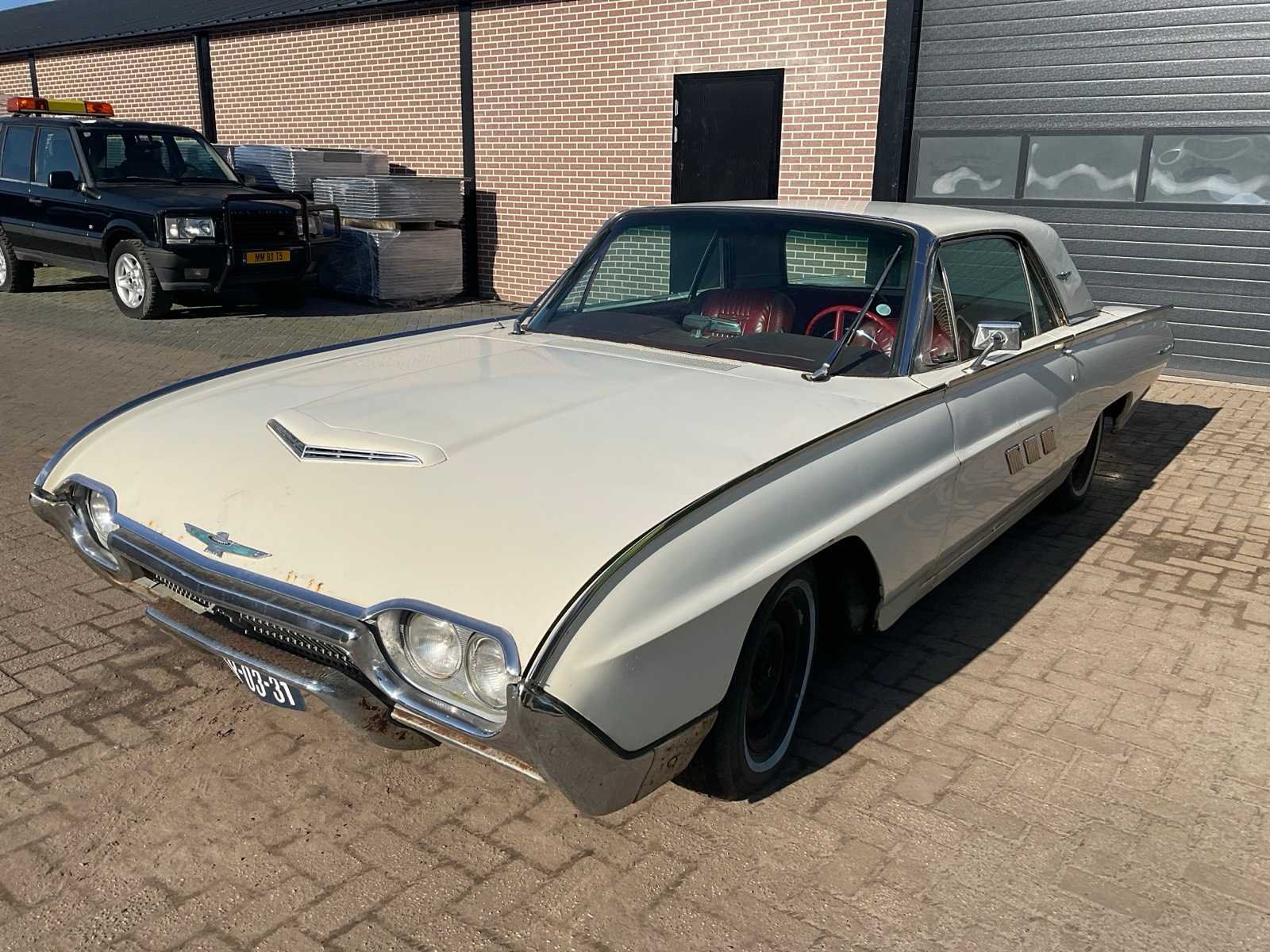 Oldtimerauto; V8; RD interieur Kenteken: AR-03-31 Merk: Ford Type: Thunderbird Bouwjaar: 1963 Chassisnummer: 2y89z100951 Afgelezen kilometerstand: 21671 NAP status: Geen oordeel Brandstof: benzine Datum eerste toelating: 1963-09-15 Datum eerste toelating (NL): 2010-06-28 Carrosserie: Sedan Vermogen (pk): 299 Vermogen (kW): 220kW Emissieklasse: 0 Aantal deuren: 2 Aantal zitplaatsen: 4 Kleur: wit Cilinderinhoud: 7000 Aantal cilinders: 8 Ledig gewicht: 1960