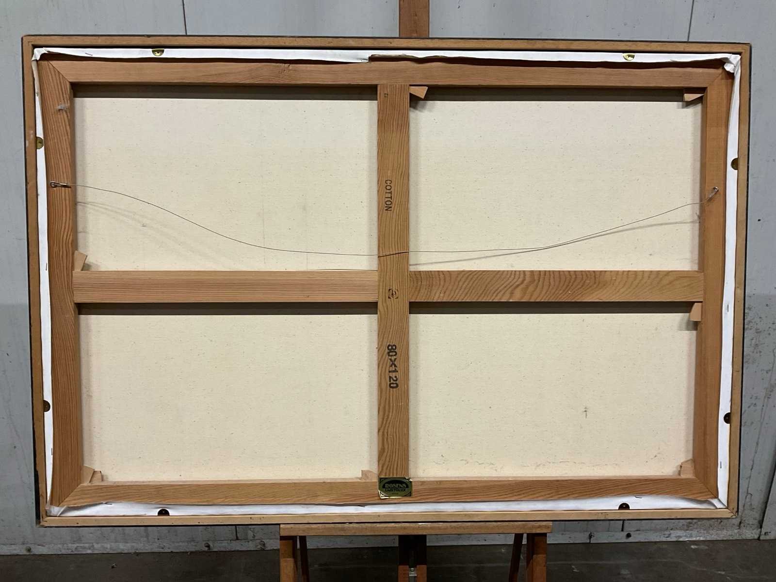 Kunstenaar: Miny Wigger Datering: 1999 Techniek: Olieverf op doek Gesigneerd: Ja Hoogte: 80cm Breedte: 120cm