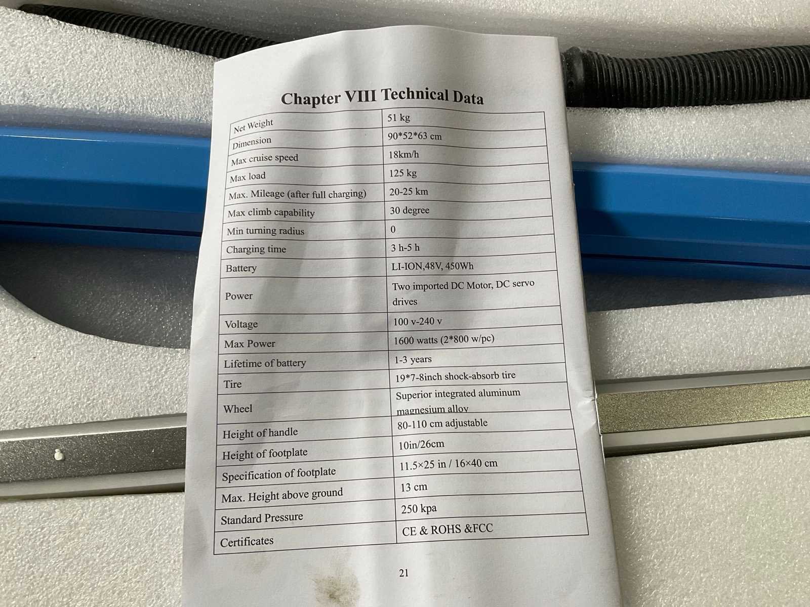 Nieuw in doos geleverd met oplader en sleutels ledverlichting; (blauw) Merk: Chapter Kleur: Blauw Gewicht: 51kg Lengte: 63cm Breedte: 90cm Hoogte: 52cm