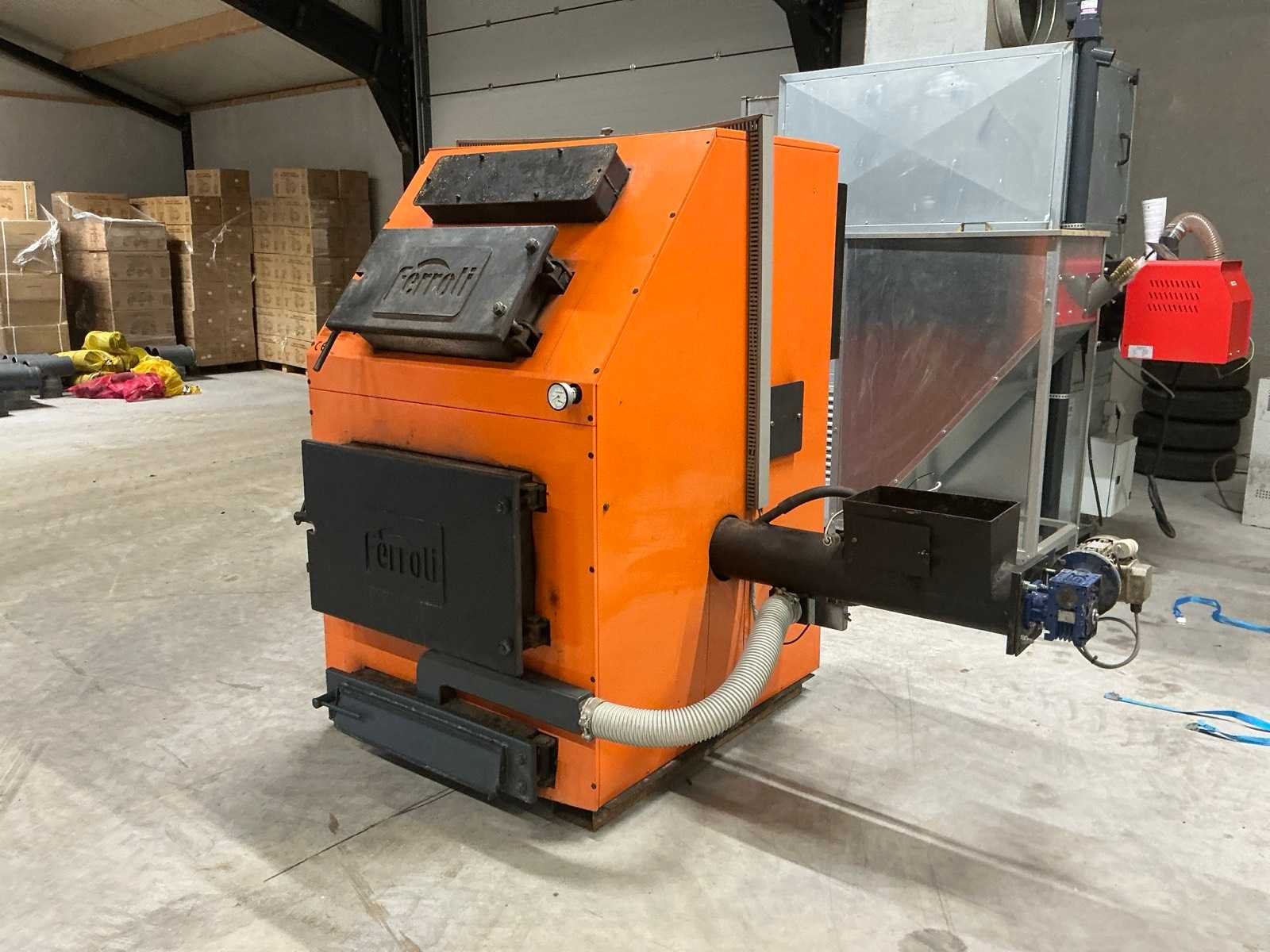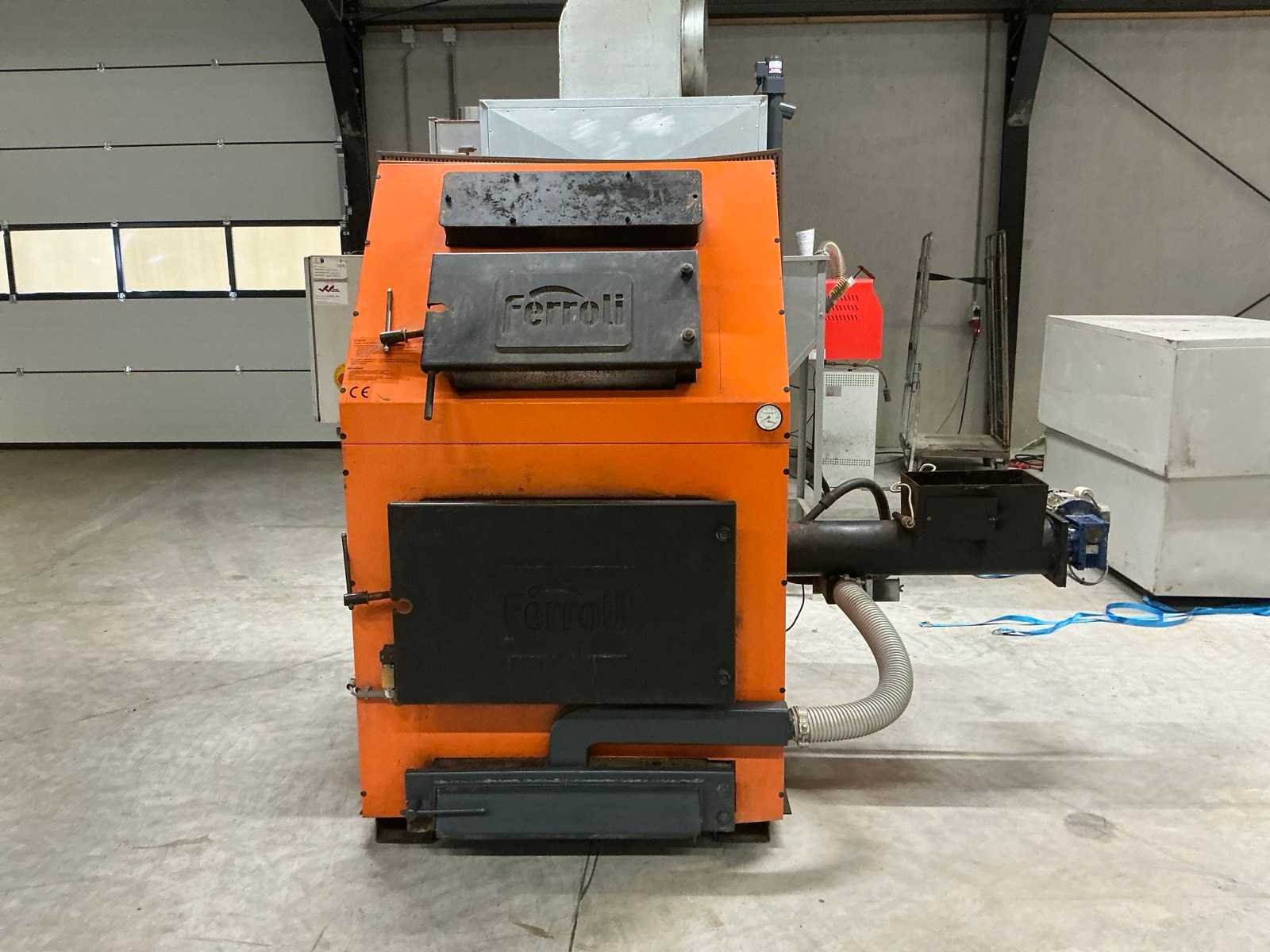Watergedragen industriële pellet-/houtketel, Nominaal vermogen: 200 kW, Maximale druk: 2,5 bar, Maximale temperatuur: 100 °C, Waterinhoud ketel: 320 liter, Norm: EN 303-5:2001. Merk: Ferroli Type: FSB 200 Vrijstaand: true Vermogen: 200kW Lengte: 170 Breedte: 250 Hoogte: 194