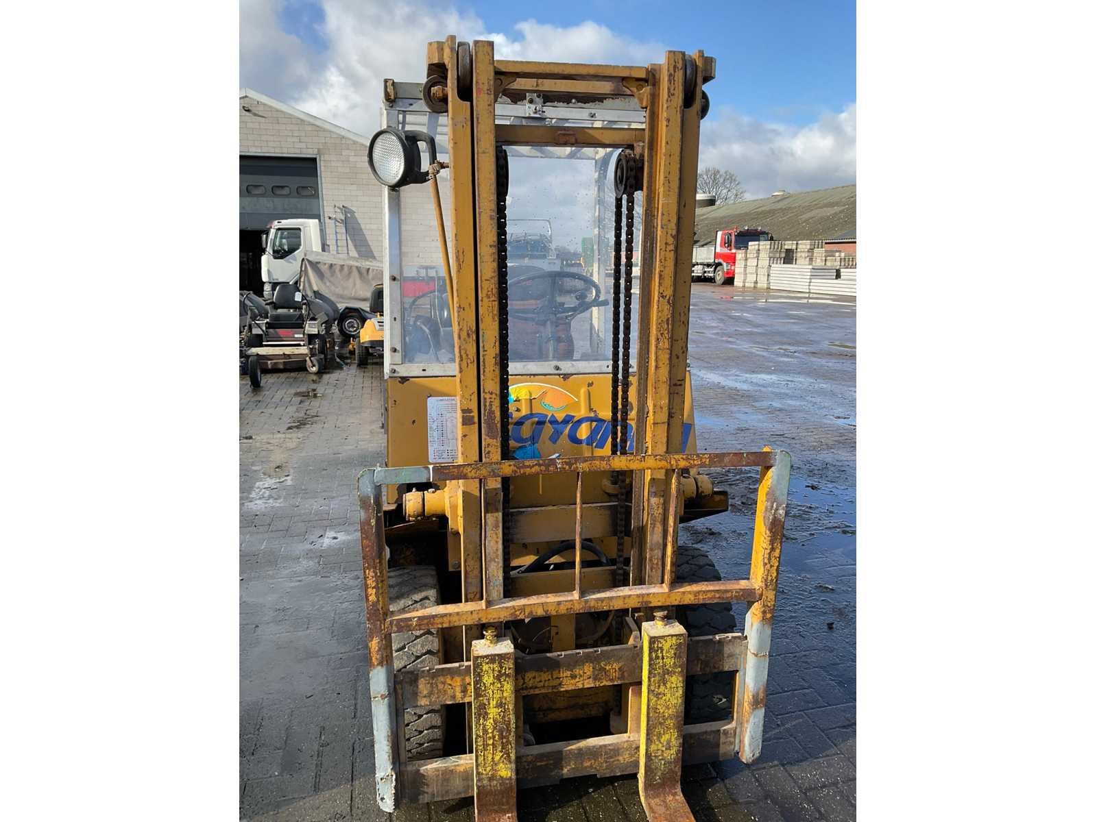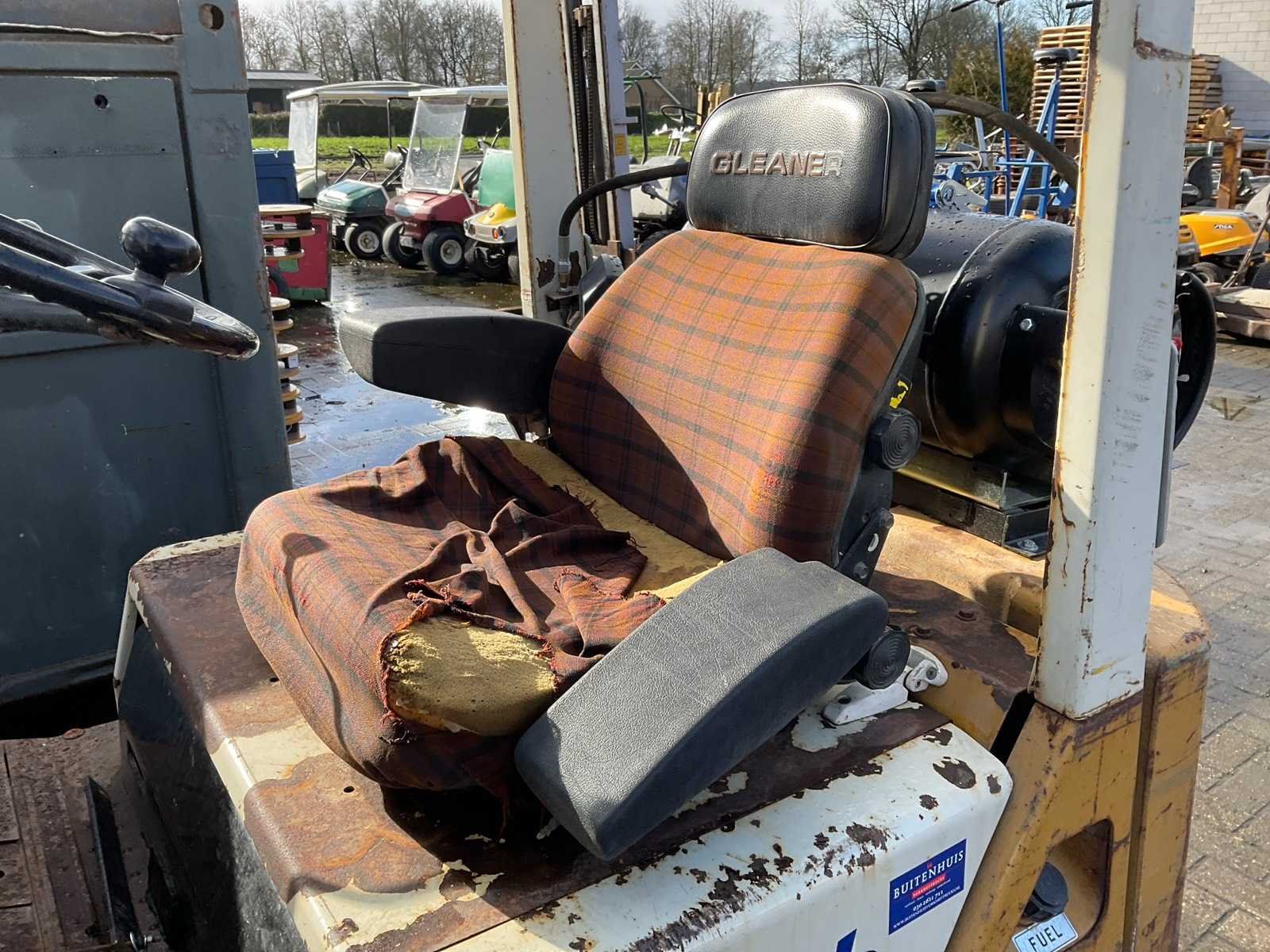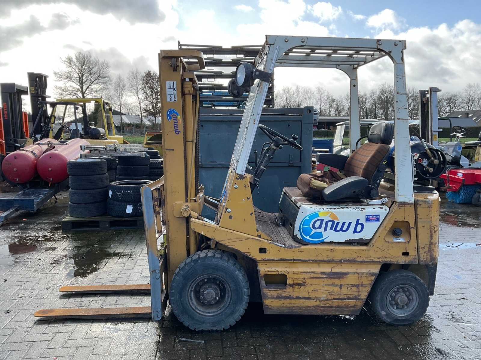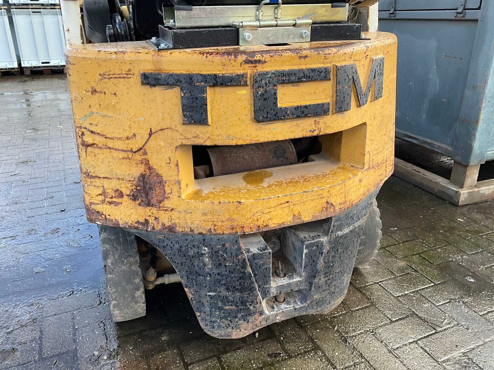 Merk: TCM Brandstof: LPG Mast: Duplex Soort band: Volrubber banden Aantal wielen: 4 Afgelezen urenstand: 5544 Hefvermogen: 1500kg Lepellengte: 920mm Hefhoogte: 3000mm Minimale doorrijhoogte: 2050mm Totale afmeting L: 2300mm Totale afmeting Breedte: 1060mm Totale afmeting Hoogte: 2050mm LPG: true