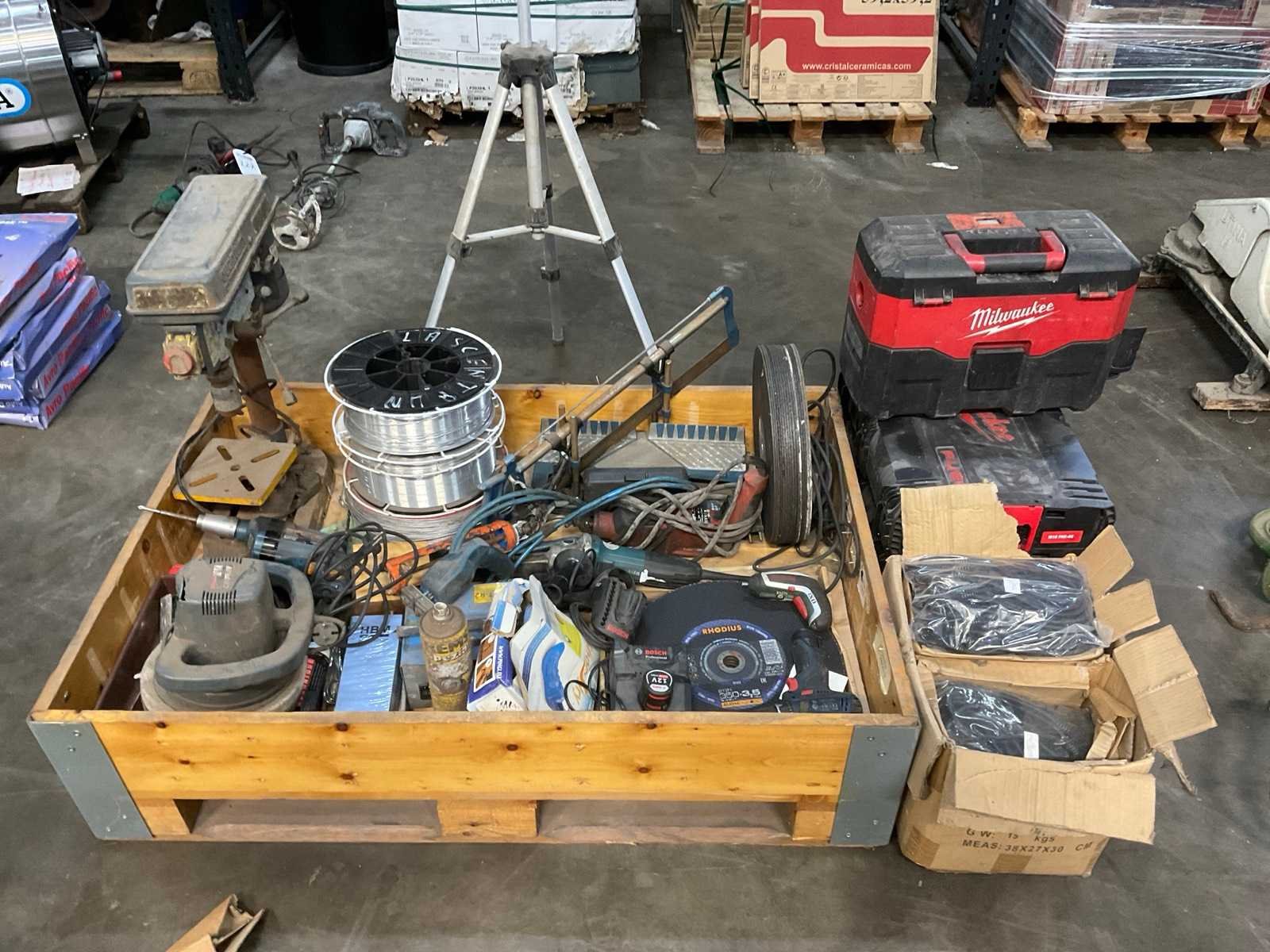 Slijptool-lasdraad-tafelboormachine-koffers-etc