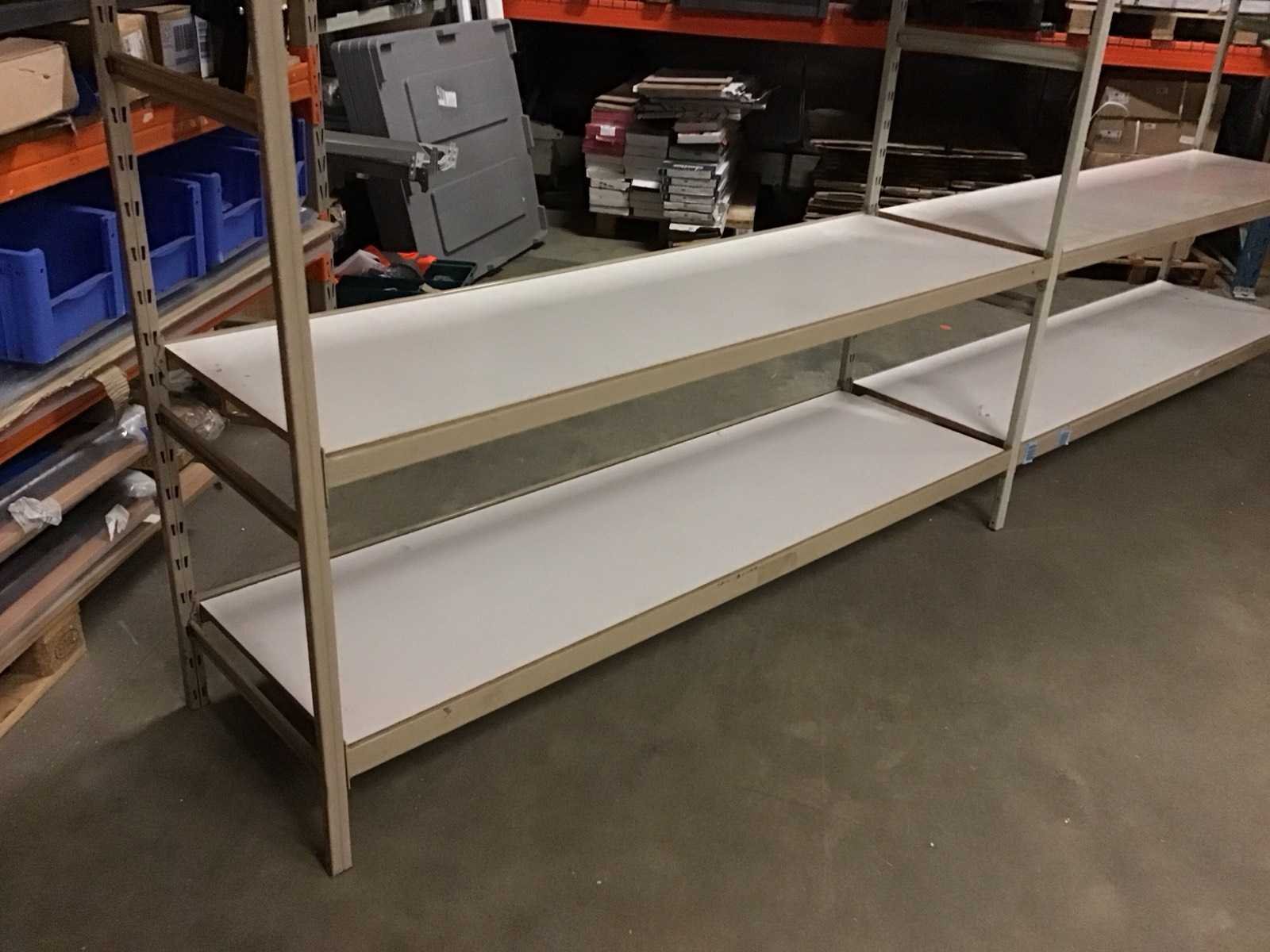 Merk: Manutan Aantal secties: 2 Sectie afm. b: 2050mm Sectie diepte: 600mm Aantal staanders: 3 Aantal legborden: 8 Totale afmeting Breedte: 412cm Totale afmeting Hoogte: 254cm