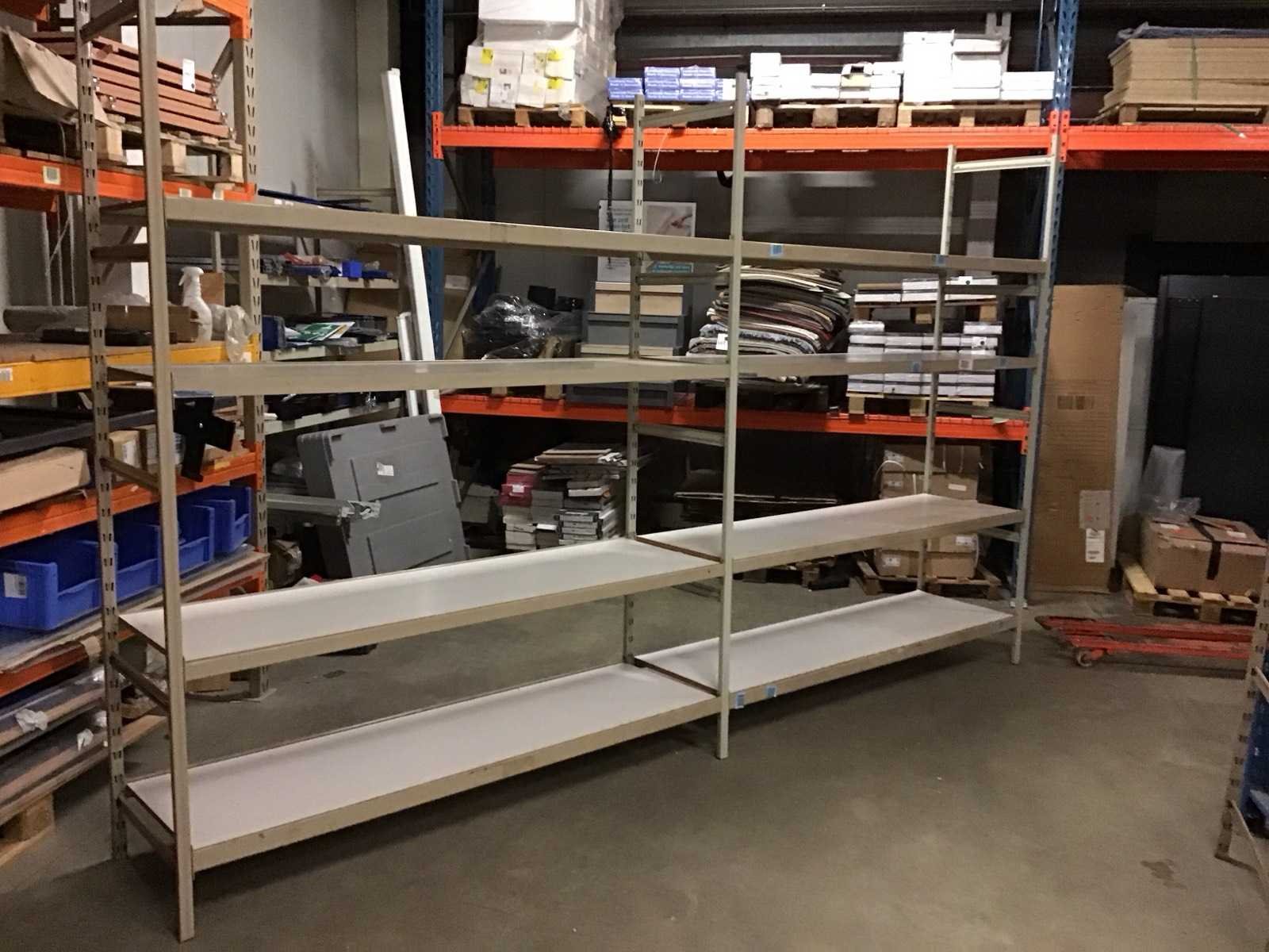 Merk: Manutan Aantal secties: 2 Sectie afm. b: 2050mm Sectie diepte: 600mm Aantal staanders: 3 Aantal legborden: 8 Totale afmeting Breedte: 412cm Totale afmeting Hoogte: 254cm