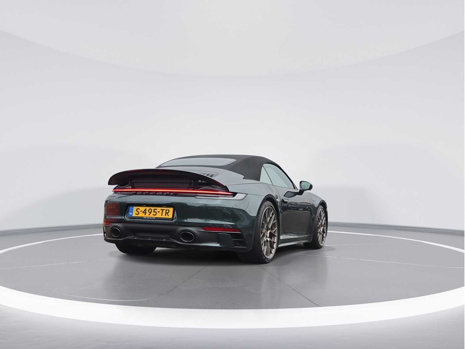 * 46J : 20/21 inch RS Spyder Design wiel * 0N5 : Achterasbesturing * 9VL : BOSE Surround Sound-System * 5TT : Interieurpakket Paldao * 8JU : Led-matrix koplampen getint inclusief PDLS Plus * 2UH : Liftsysteem vooras * 1BV : PASM sportonderstel (-10 mm) * 1P7 : Porsche Dynamic Chassis Control (PDCC) * 4F2 : Porsche Entry & Drive * 4A3 : Stoelverwarming * Race Tex stuurwiel alcantara * Carplay * Sportdesign pakket * Clubleder * Licht Designpakket * Sportuitlaat * Sport Chrono * Volledig onderhouden * Forest Green PTS * Volledig schadevrij, geen schadeverleden! Merk: Porsche Model: 911 Cabrio Type: 3.0 Carrera S Bouwjaar: 2020 Afgelezen kilometerstand: 23899km Cilinderinhoud: 2981cc Vermogen (kW): 331kW Brandstof: Benzine Chassisnummer: WP0ZZZ99ZMS241691 Laadvermogen: 0kg NAP status: Logisch Datum eerste toelating: 2020-12-17 Datum eerste toelating (NL): 2023-04-07 APK vervaldatum: 2026-12-24 Vermogen (pk): 450hp Aantal zitplaatsen: 4 Kleur: groen Transmissie: Automaat Emissieklasse: 6 Aantal deuren: 2 Aantal sleutels: 2 Ledig gewicht: 1560kg Velgmaat: Front 20" Back 21" Bruto BPM (NL): 37834€ Aantal cilinders: 6 Carrosserie: cabriolet Carfax Link: https://was.carfax.eu/v0/api/ccdid/5100016408/svc/201/vinreg/S495TR/checksum/eyJhbGciOiJIUzI1NiIsInR5cCI6IkpXVCJ9.eyJleHAiOjE3NjA5ODYyMjh9.bdmpPQO9IAyJrKGe26mEWhyTUKtVA6BjqOMdpRo3Ugo Start en rijdt: Start and drive startinformatie : Start en rijdt Self drive export possible : true Airconditioning: true Navigatie: true LED-koplampen: true Leder bekleed: true