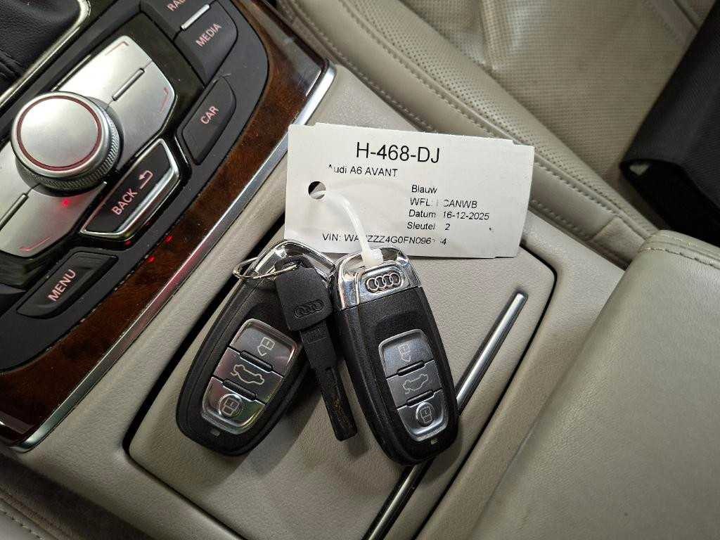 | CAMERA | MEMORY | STOELVERWARMING VOOR + ACHTER | TREKHAAK ELEKTRISCH WEGKLAPBAAR | ADAPTIVE CRUISE CONTROL | XENON | Kenteken: H-468-DJ Merk: Audi Model: A6 Avant Type: 3.0 TDI Quattro Premium Edition Bouwjaar: 2015 Afgelezen kilometerstand: 232367km Cilinderinhoud: 2967cc Vermogen (kW): 200kW Brandstof: Diesel Chassisnummer: WAUZZZ4G0FN096164 Datum eerste toelating: 2015-06-18 Datum eerste toelating (NL): 2019-12-27 APK vervaldatum: 2026-07-31 Vermogen (pk): 268hp Energielabel: C Aandrijving: Start en rijdt Aantal zitplaatsen: 5 Maximaal trekgewicht ongeremd: 2000kg Maximaal trekgewicht geremd: 750kg Kleur: Moonlight Blue Pearl Transmissie: Automaat Emissieklasse: 6 Aantal deuren: 5 Aantal sleutels: 2 Ledig gewicht: 1810kg Bruto BPM (NL): 11580€ Aantal cilinders: 6 Carrosserie: Stationwagen Nationaliteit documenten: Nederland Onderhoudshistorie: Aanwezig Carfax Link: https://was.carfax.eu/v0/api/ccdid/5100016408/svc/201/vinreg/H468DJ/checksum/eyJhbGciOiJIUzI1NiIsInR5cCI6IkpXVCJ9.eyJleHAiOjE3NzM3NDI2NDh9.i8pSHfdCKucbMrikptDXFhL5cRLW31Ub1lOhOFNak6k Start en rijdt: Start and drive startinformatie : Start en rijdt Self drive export possible : true Airconditioning: true Navigatie: true