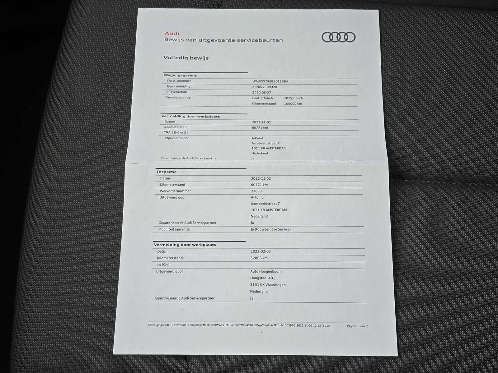 CAMERA | CARPLAY | LED | 1e EIGENAAR | BTW AUTO | VOLL ONDERHOUDEN Kenteken: K-354-GD Merk: Audi Model: e-tron Type: e-tron 50 QUATTRO Launch Edition Bouwjaar: 2020 Afgelezen kilometerstand: 168562km Brandstof: Elektrisch Chassisnummer: WAUZZZGE9LB011684 Datum eerste toelating: 2020-05-27 Datum eerste toelating (NL): 2020-12-10 APK vervaldatum: 2026-05-27 Vermogen (pk): 313hp Energielabel: A+ Aandrijving: AWD Aantal zitplaatsen: 5 Maximaal trekgewicht ongeremd: 750kg Maximaal trekgewicht geremd: 1800kg Kleur: zwart Transmissie: Automaat Emissieklasse: Z Aantal deuren: 4 Aantal sleutels: 1 Ledig gewicht: 2345kg Carrosserie: SUV Nationaliteit documenten: Nederlands Onderhoudshistorie: Aanwezig danwel digitaal Carfax Link: https://was.carfax.eu/v0/api/ccdid/5100016408/svc/201/vinreg/K354GD/checksum/eyJhbGciOiJIUzI1NiIsInR5cCI6IkpXVCJ9.eyJleHAiOjE3NzYwOTIzODR9._8gvyaBrCWV6guoVosmOdDEyC9Dowh9H6KwVLAT9n9Q Start en rijdt: Start and drive startinformatie : Start en rijdt Self drive export possible : true Airconditioning: true Navigatie: true LED-koplampen: true Vierwielaandrijving 4x4: true