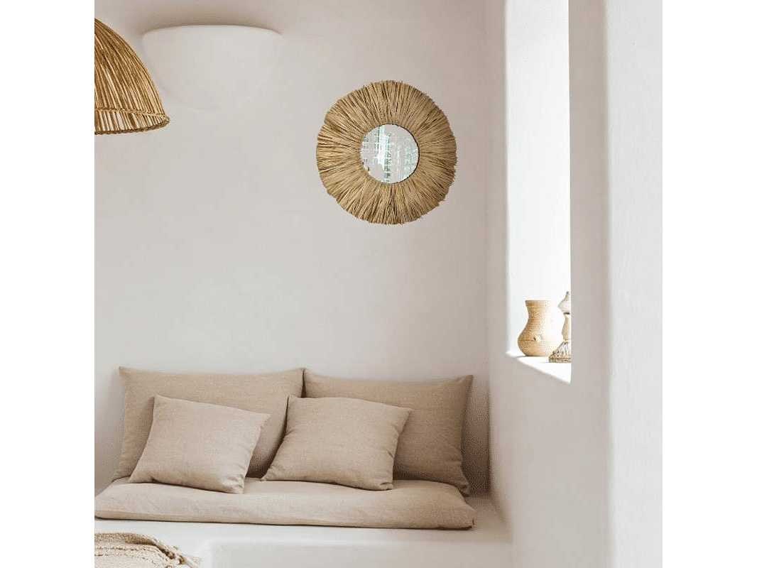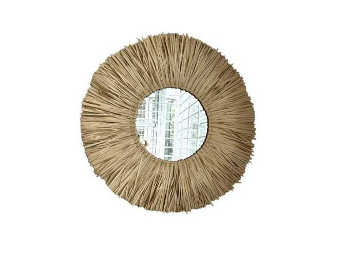 Specificaties Maat 60×23 cm Kleur Naturel Materiaal Palmblad Vorm Rond EAN code 8721001690183 Merk: 4Shine Product type: Spiegel Verstelbaar: false Kleur: Naturel Lengte: 2cm Breedte: 60cm Hoogte: 60cm Materiaal: Rotan GS Code: 8721001690183