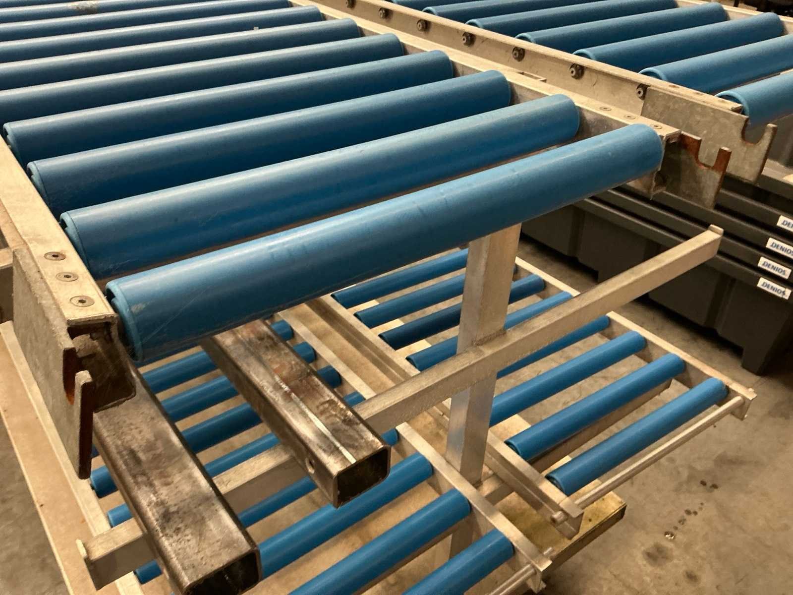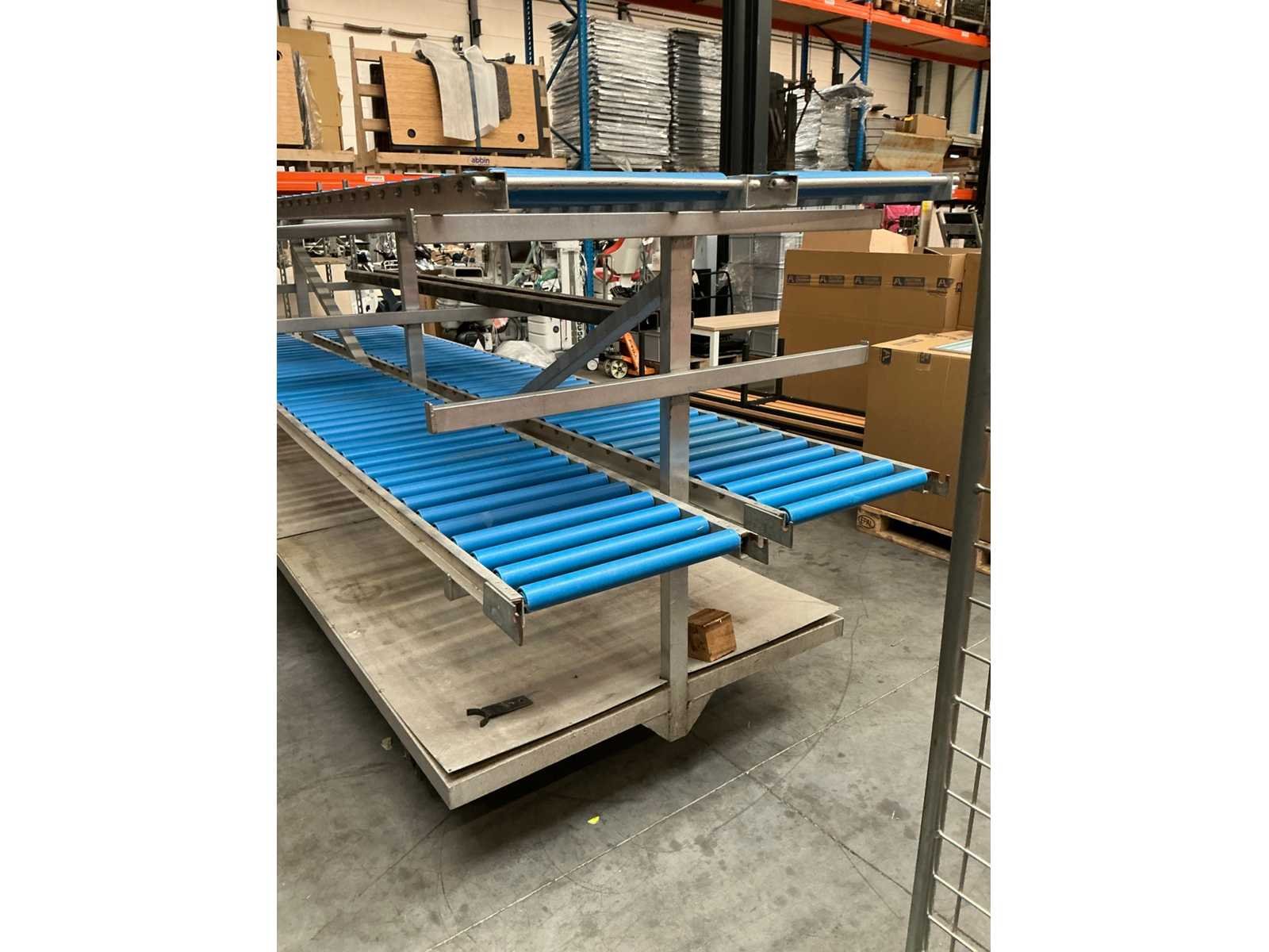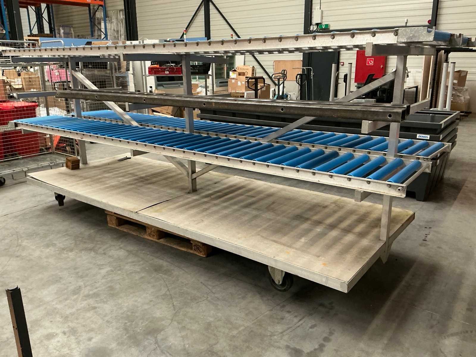 Rolband aan beide kanten, verrijdbaar, (staat nu op 2 pallets) Baanafmeting l: 4000mm Baanafmeting b: 1300mm Totale afmeting Hoogte: 1500mm