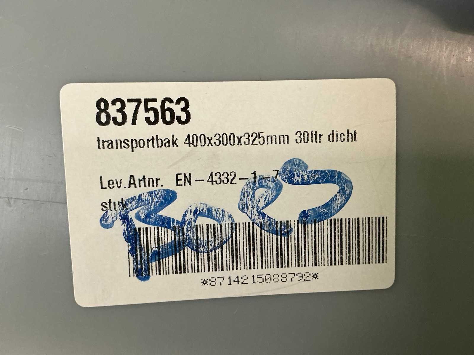 400x300x325mm 30L 1e: Grijze bak