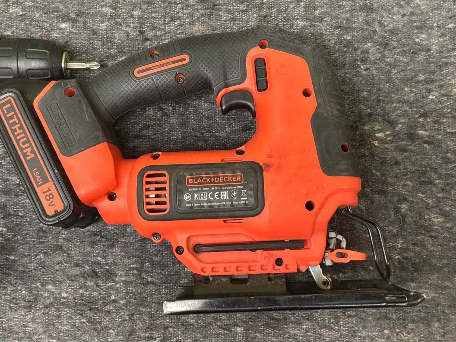 Inclusief twee accu’s. Merk: Black+ decker Type: Boormachine en decoupeerzaag
