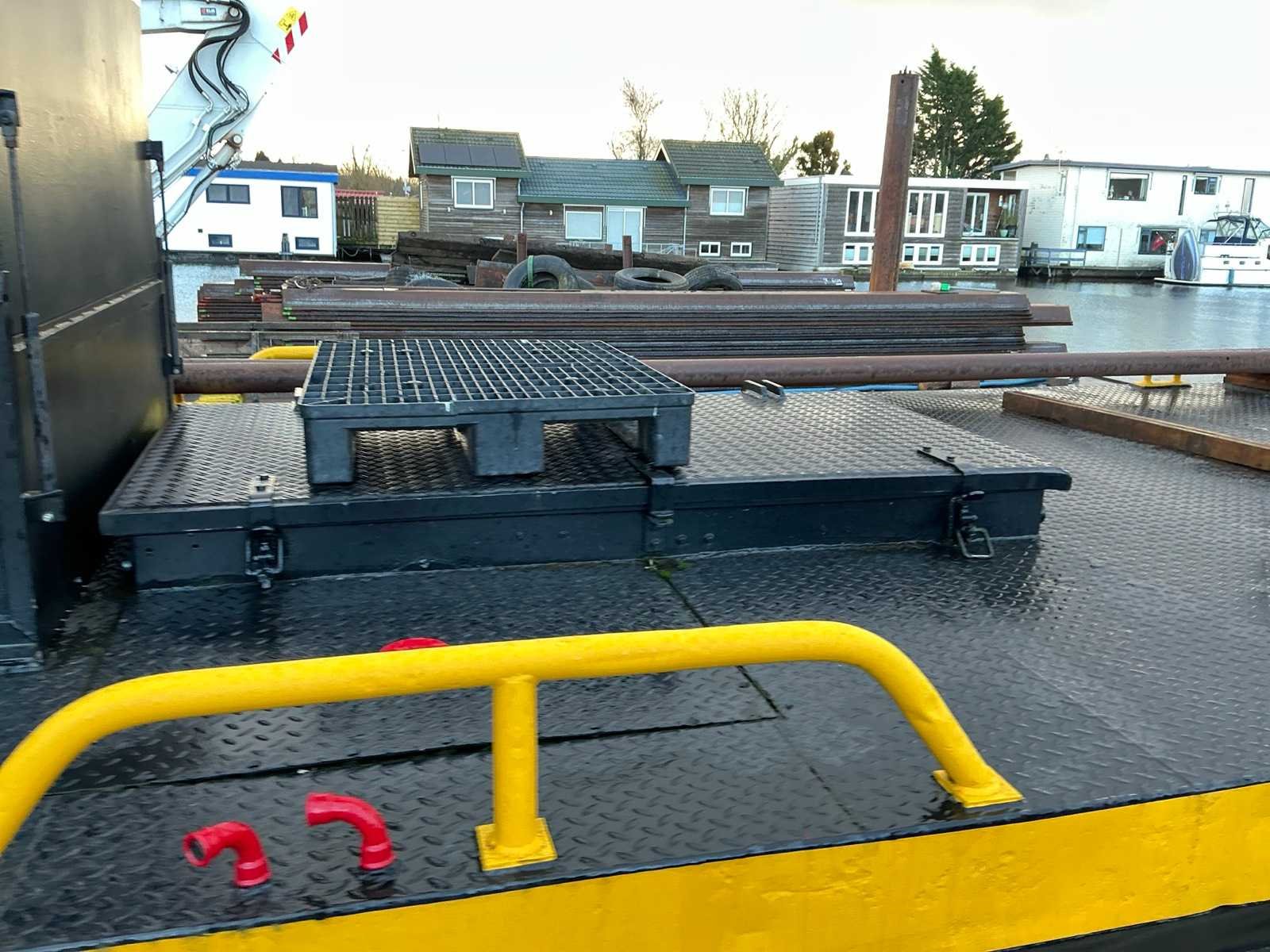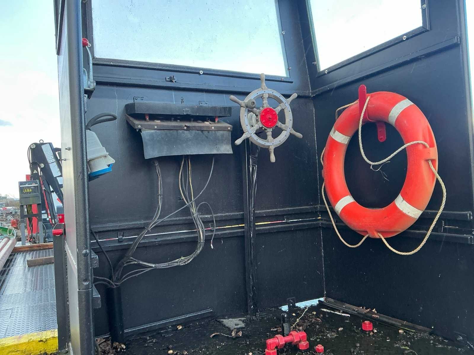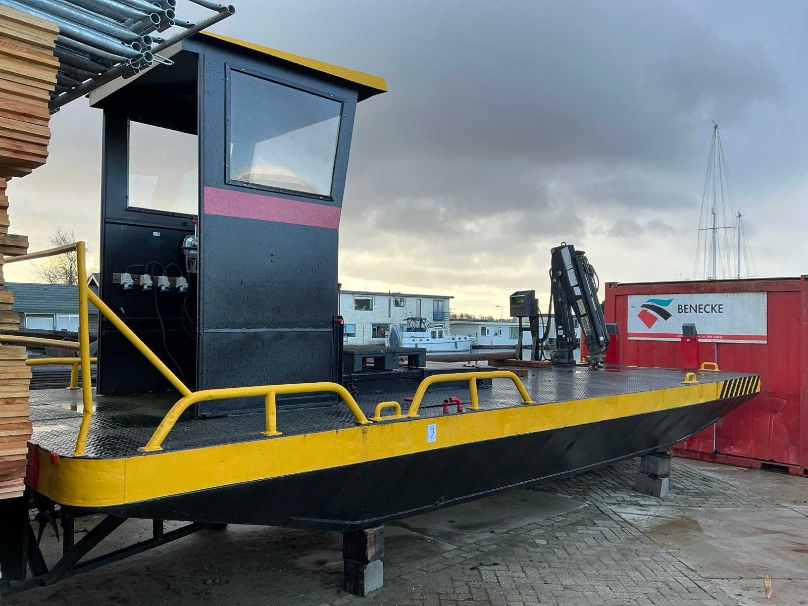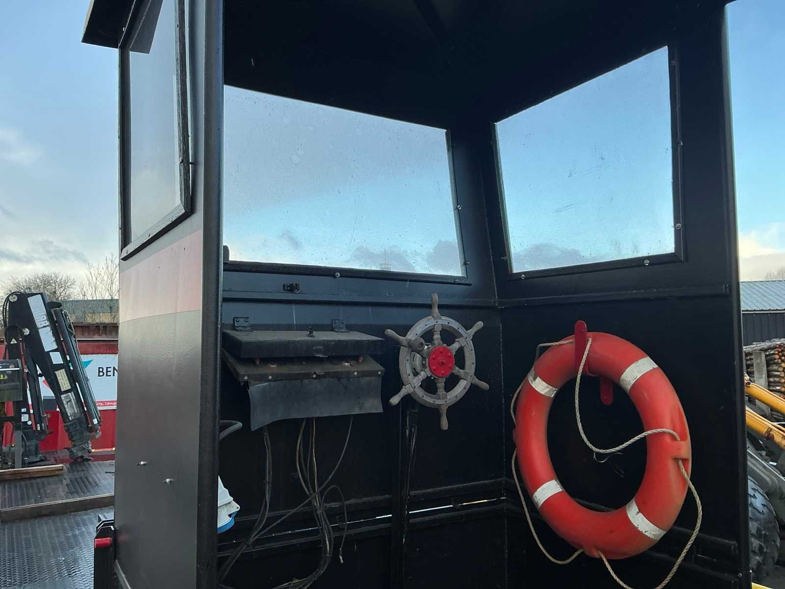 Voorzien 2 spudpalen(lengte per stuk circa 5 meter)Hiab 033T laadkraan, DAF 615 6 cilinder dieselmotor, lengte over alles 8,3 meter, breedte over alles 3 meter, diepgang onbekend, kajuit kan neergehaald worden.transporthoogte 2,75meter., zonder meetbrief of registratie, de beschikbare heftruck kan deze kavel niet verladen, neemt u uw eigen middelen mee