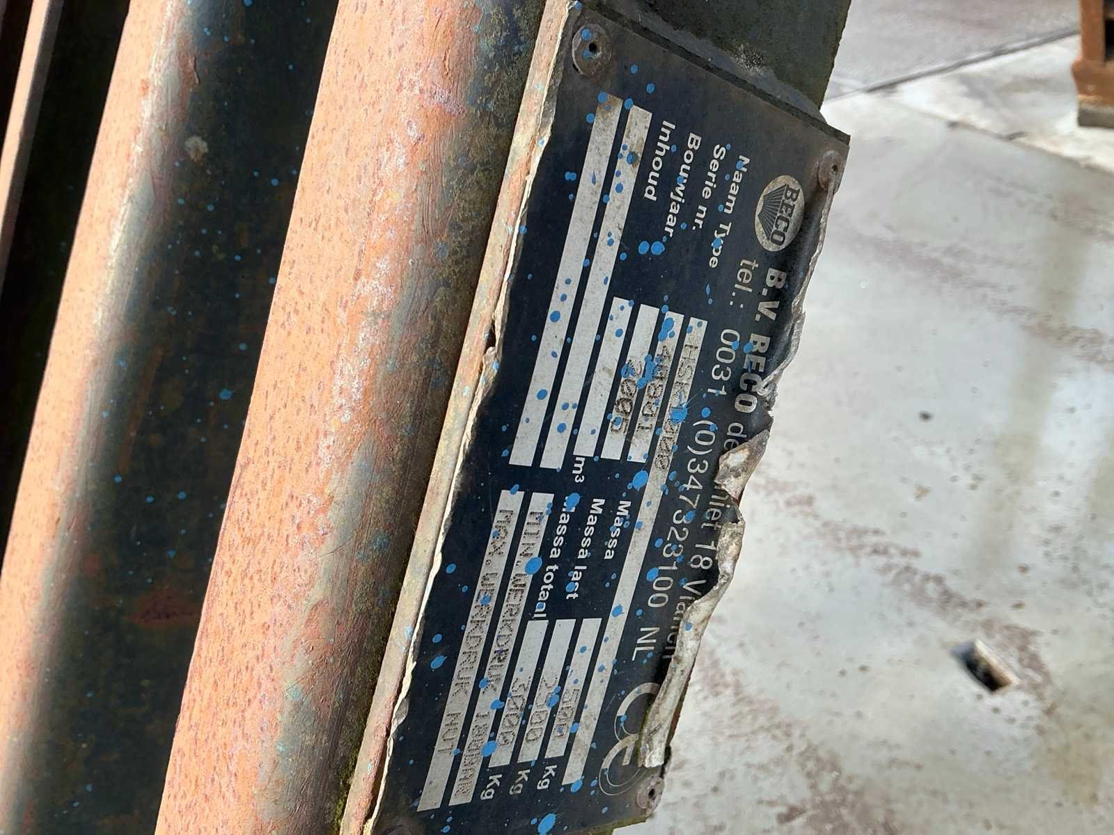 WLL 2500kg, werkbreedte 1250mm. Merk: Beco Type: HSK1000 Bouwjaar: 2005 Serienummer: 40901 Eigen gewicht: 500kg