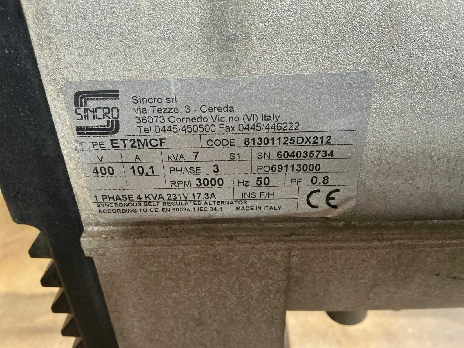 Merk: Europower Type: ET2MCF Capaciteit.: 7kVA Aansluiting: 400V Motor merk: Honda GX270 9pk Generator merk: Sincro Totale afmeting L: 1100mm Totale afmeting Breedte: 730mm Totale afmeting Hoogte: 760mm