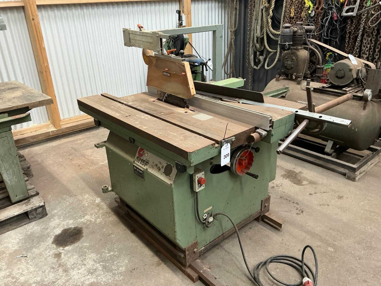 Merk: SCM Type: SI15F Zaagblad Ø: 300mm Tafel afmeting l: 1100mm Tafel afmeting b: 1380mm Onderliggende afkortzaag: true Aansluiting: 380V Totale afmeting L: 1500mm Totale afmeting Breedte: 1600mm