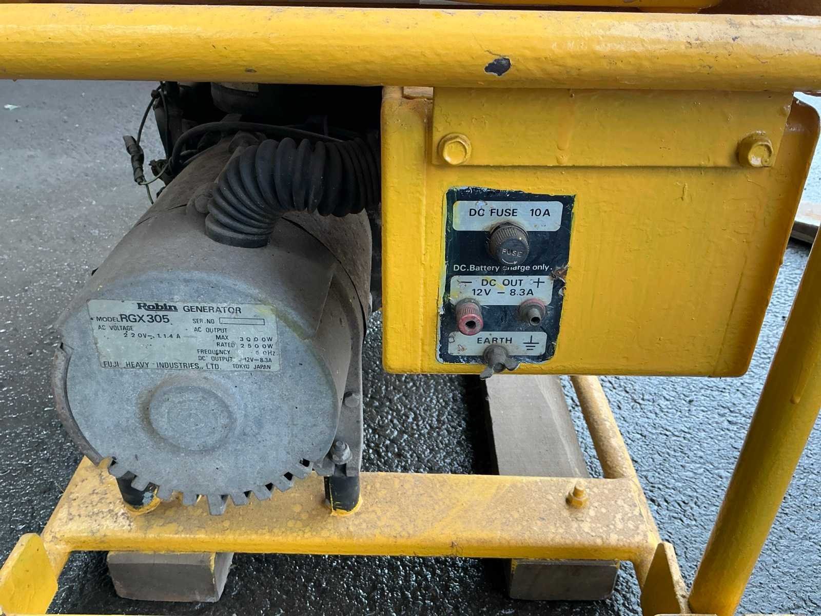 2x schuko aansluiting, 220 volt. Merk: Robin Aansluiting: 220V Motor merk: Robin Generator merk: Robin Generator type: RGX350 Totale afmeting L: 1150mm Totale afmeting Breedte: 550mm Totale afmeting Hoogte: 600mm