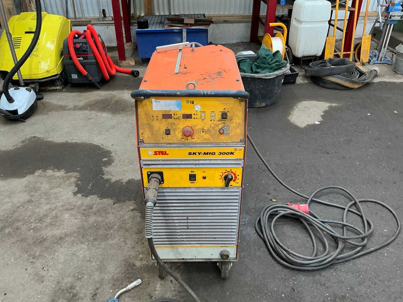 Merk: Stel Type: Sky Mig 300K Serienummer: AA-248870 Inschakelduur: 35% Max. lasvermogen: 250A Aansluiting: 380V Digitale uitlezing: true Afmeting l: 900mm Afmeting b: 500mm Afmeting h: 1000mm