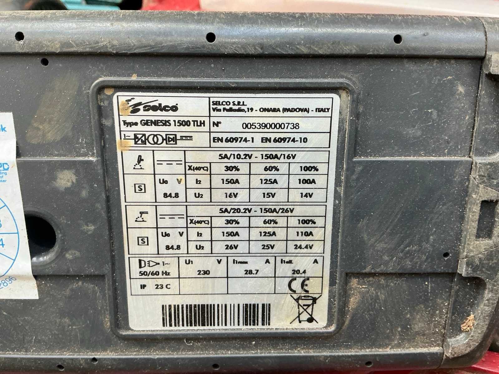 Met koffer en toebehoren Merk: Selco Type: Genesis 1500 tlh Inschakelduur: 30% Max. lasvermogen: 150A Aansluiting: 230V Digitale uitlezing: true