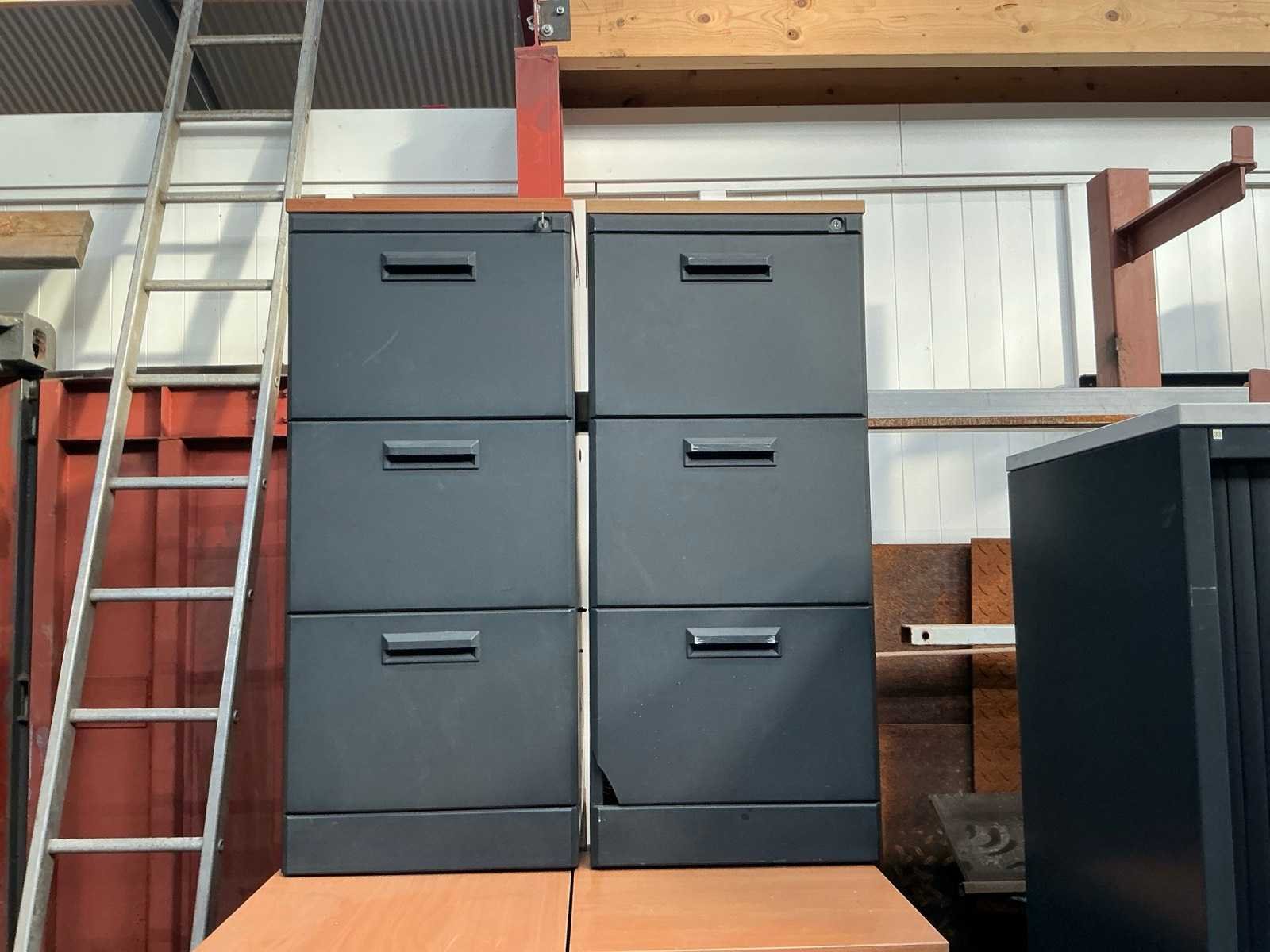 Waaronder, afmetingen: archiefkasten (120x45x75 cm, 120x45x135 cm). Betreft 13 ladeblokken, 7 archiefkasten.