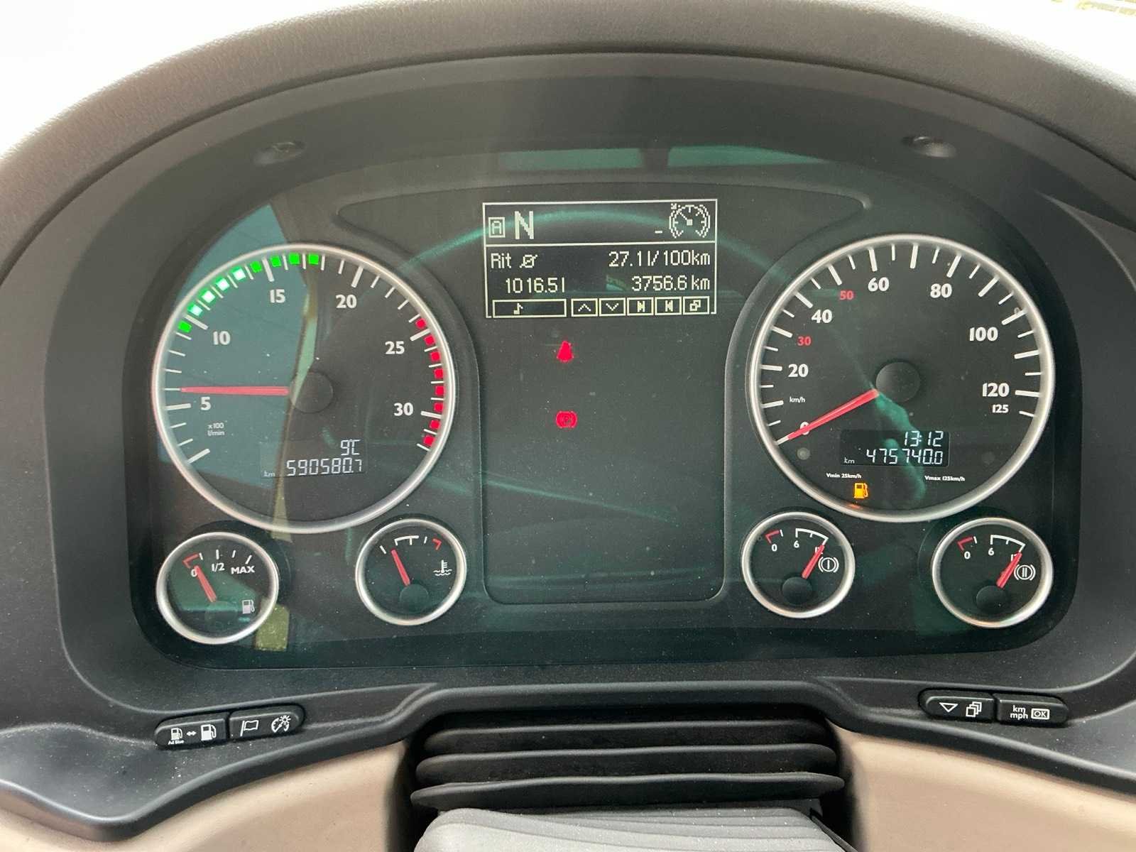 Massa rijklaar 7629 kg, Massa ledig voertuig 7529 kg, Technische max. massa voertuig 19000 kg, Toegestane max. massa voertuig 19000 kg, Maximum massa samenstel 50000 kg, Euro 6, Afstand voorzijde voertuig tot hart koppeling 449 cm, Standairco, 2e bed, koelkast, 2x brandstoftank Kenteken: 91-BKG-7 Merk: MAN Type: TGX 18.420 Bouwjaar: 2017 Chassisnummer VIN: WMA06XZZ9JP101851 Cilinderinhoud: 12419cc Kilometerstand bij opname: 590580km APK vervaldatum: 2026-12-27 Datum eerste toelating: 2017-12-27 Datum eerste toelating (NL): 2017-12-27 Type transmissie: Automatisch Aantal assen: 2 Asconfiguratie: 4x2 Fuel Type: Diesel Laadvermogen: 11471kg Aantal sleutels: 2 Emissieklasse: 6 Eigen gewicht: 7529kg Totale afmeting L: 5980mm Totale afmeting Breedte: 2500mm Totale afmeting Hoogte: 4000mm Startinformatie: Ja Afgelezen kilometerstand: 590580km Nationaliteit documenten: Nederland Aantal zitplaatsen: 2 Zelf rijdend exporteren: Mogelijk Automaat: true Diesel: true