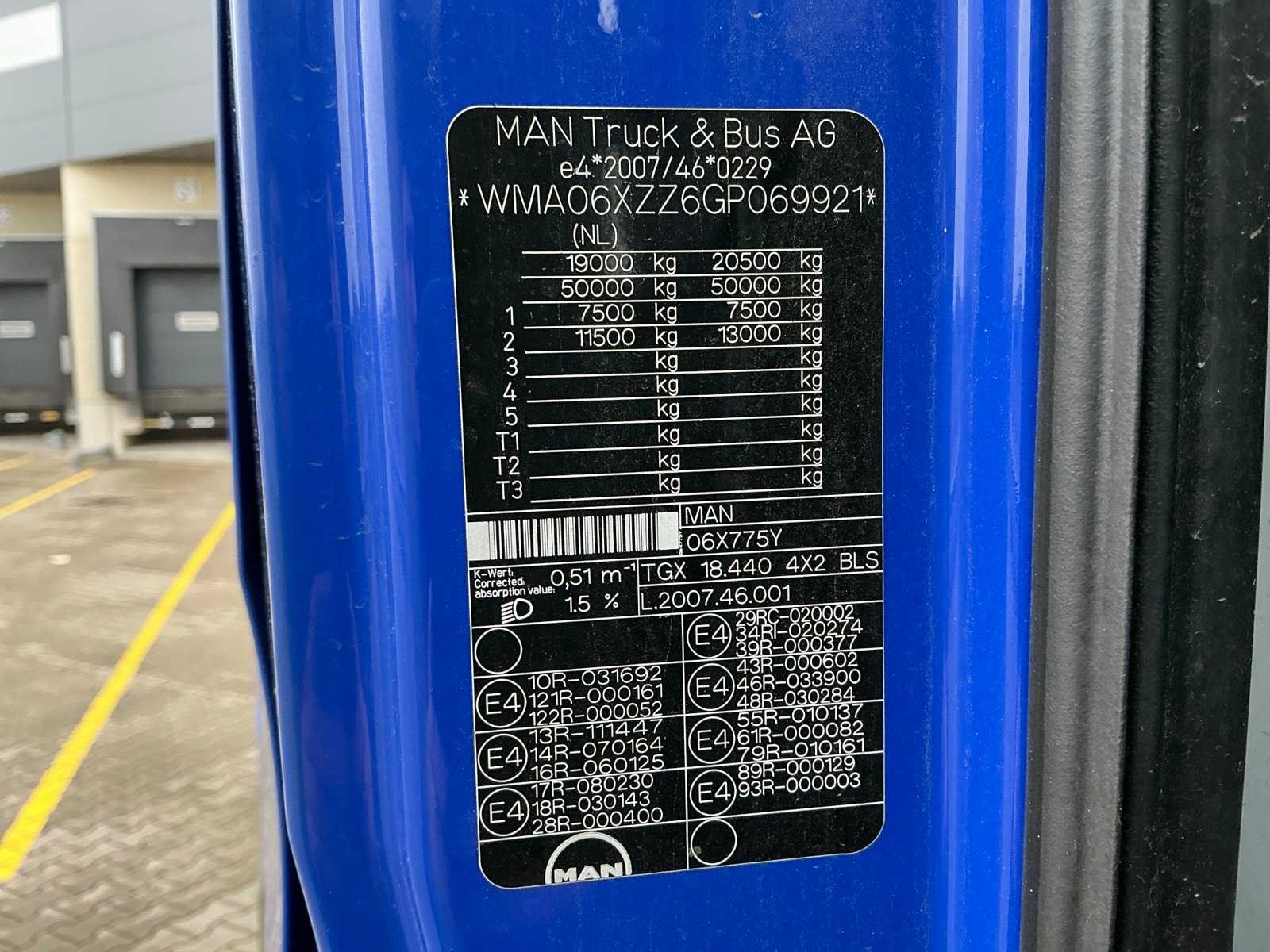 Massa rijklaar 7608 kg, Massa ledig voertuig 7508 kg, Technische max. massa voertuig 20500 kg, Toegestane max. massa voertuig 19000 kg, Maximum massa samenstel 50000 kg, Oplegger geremd 42392 kg , Euro 6, Wielbasis 360 cm, Afstand voorzijde voertuig tot hart koppeling 451 cm, Camera, Standairco, 2e bed Kenteken: 27-BGK-3 Merk: MAN Type: TGX.18.440 Bouwjaar: 2015 Chassisnummer VIN: WMA06XZZ6GP069921 Cilinderinhoud: 12419cc Kilometerstand bij opname: 872704km APK vervaldatum: 2026-06-07 Datum eerste toelating: 2015-10-22 Datum eerste toelating (NL): 2015-10-22 Type transmissie: Automatisch Aantal assen: 2 Asconfiguratie: 4x2 Fuel Type: Diesel Laadvermogen: 11492kg Aantal sleutels: 2 Emissieklasse: 6 Slaapcabine: true Eigen gewicht: 7608kg Totale afmeting L: 6000mm Totale afmeting Breedte: 2500mm Totale afmeting Hoogte: 4000mm Startinformatie: Ja Nationaliteit documenten: Nederland Aantal zitplaatsen: 2 Zelf rijdend exporteren: Mogelijk Automaat: true Diesel: true