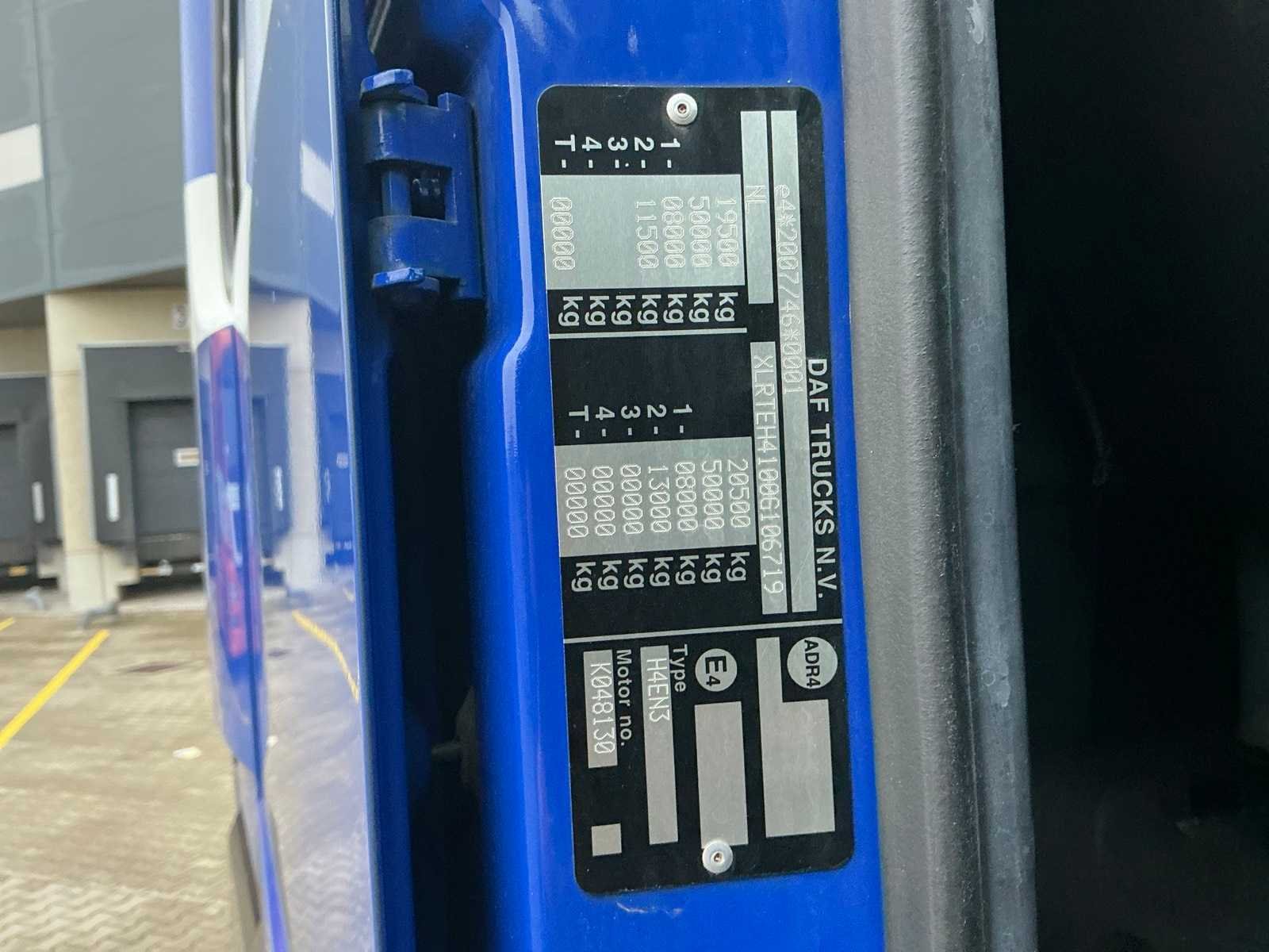 Massa rijklaar 7932 kg, Massa ledig voertuig 7832 kg, Technische max. massa voertuig 20500 kg, Toegestane max. massa voertuig 19500 kg, Maximum massa samenstel 50000, Oplegger geremd 42068 kg, EURO 6, Afstand voorzijde voertuig tot hart koppeling 450 cm, Wielbasis 380 cm, Lane departure systeem, Standairco, Koelkast, 2e bed, Kenteken: 19-BHF-1 Merk: DAF Type: XF 440 Bouwjaar: 2016 Chassisnummer VIN: XLRTEH41886186719 Cilinderinhoud: 10837cc Kilometerstand bij opname: 813751km APK vervaldatum: 2026-03-03 Datum eerste toelating: 2016-05-04 Datum eerste toelating (NL): 2016-05-04 Type transmissie: Automatisch Aantal assen: 2 Asconfiguratie: 4x2 Fuel Type: Diesel Laadvermogen: 11668kg Aantal sleutels: 2 Emissieklasse: 6 Slaapcabine: true Eigen gewicht: 7932kg Totale afmeting L: 5920mm Totale afmeting Breedte: 2500mm Totale afmeting Hoogte: 4000mm Startinformatie: Ja Nationaliteit documenten: Nederland Aantal zitplaatsen: 2 Zelf rijdend exporteren: Mogelijk Automaat: true Diesel: true