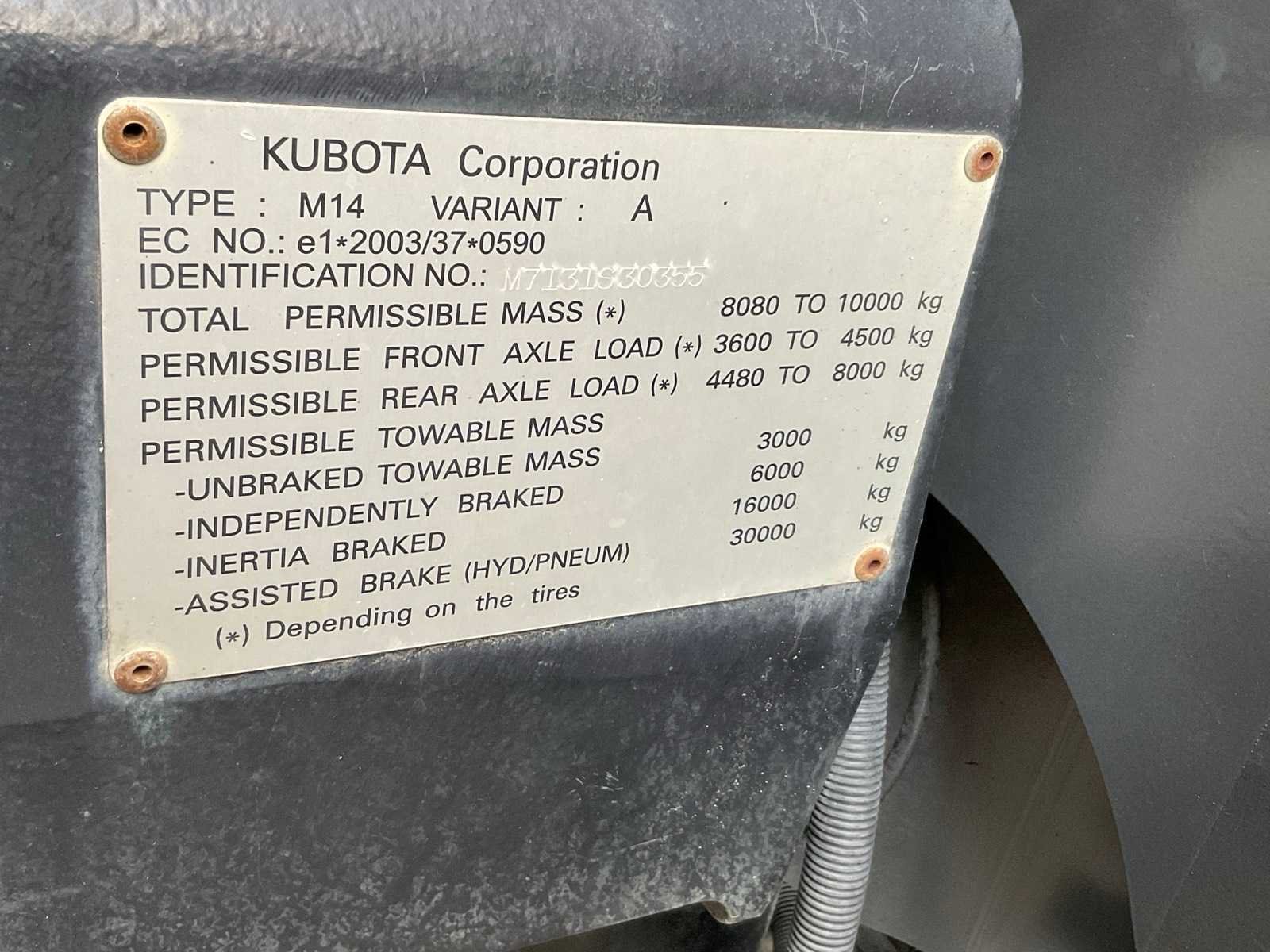 Voorzien van onder andere: geveerde cabine, adblue, geveerde vooras, werkverlichting, spatbordbediening, luchtrem aansluiting, kipperknobbel, slede trekhaak, pto rpm 540/540E/1000/1000E, radio, airco. Merk: Kubota Type: M7 131 Bouwjaar: 2017 Kenteken: TPF-79-X Afgelezen urenstand: 3680 Aantal hydraulische ventielen voor: 1 Aantal hydraulische ventielen achter: 4 Bandenmaat voor: 480/70R28 Bandenmaat achter: 580/70R38 Fronthefinrichting: true Frontaftakas: true Cabine: true Luchtgeveerde stoel: true Chassisnummer: M7131S30355 Datum eerste toelating: 2017-06-30