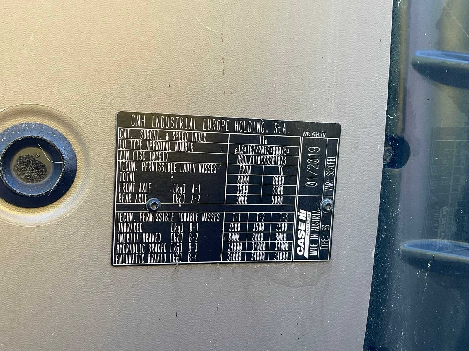 Aftakas toeren 540/540E/1000/1000E; v.v. airco, kipperknobbel, verstelbare trekhaak, spatbordbediening, adblue, geveerde cabine, 540/540E/1000/1000E rpm PTO. Merk: Case IH Type: Luxxum 110 Bouwjaar: 2019 Kenteken: TVS-85-K Afgelezen urenstand: 2028 Aantal hydraulische ventielen achter: 6 Bandenmaat voor: 480/65R24 Bandenmaat achter: 540/65R38 Cabine: true Luchtgeveerde stoel: true Datum eerste toelating: 2019-06-30
