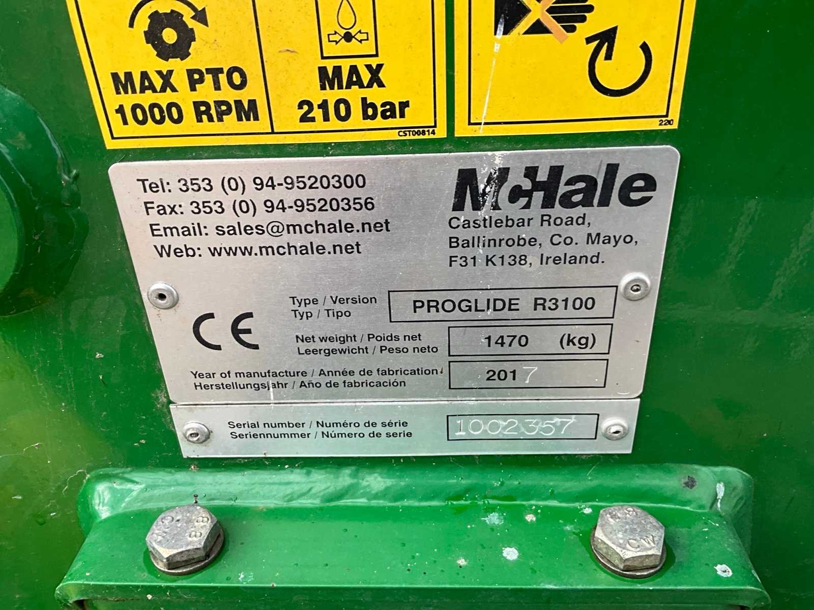 Aftakas aangedreven, voorzien van onder andere: driepunts inrichting, steunpoot, vingerkneuzers Merk: McHale Type: Proglide R3100 Bouwjaar: 2017 Serienummer: 1002357 Werkbreedte: 2500mm Totale afmeting L: 2300mm Totale afmeting Breedte: 4900mm Totale afmeting Hoogte: 1500mm Eigen gewicht: 1470kg