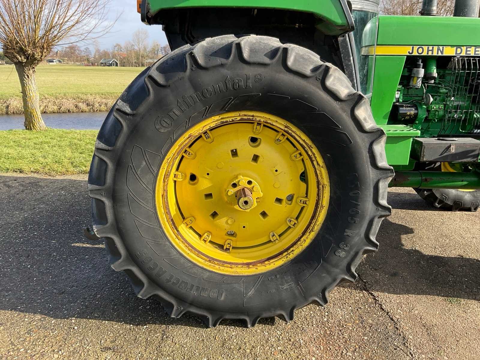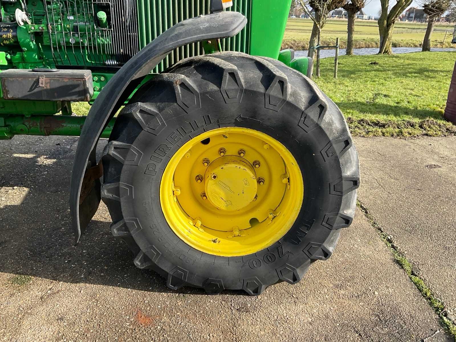 Voorzien van onder andere: werkverlichting, steekas, kipperknobbel, trekhaak. Full powershift Trekker is volledig origineel! Merk: John Deere Type: 4050 Bouwjaar: 1988 Kenteken: TNH-13-K Motorvermogen (kW): 96.9kW Afgelezen urenstand: 9054 Versnellingsbaktype: Powershift Aantal hydraulische ventielen achter: 3 Bandenmaat voor: 480/70R26 Bandenmaat achter: 650/65R38 Cabine: true Kentekenpapieren compleet?: true Datum eerste toelating: 1988-06-30
