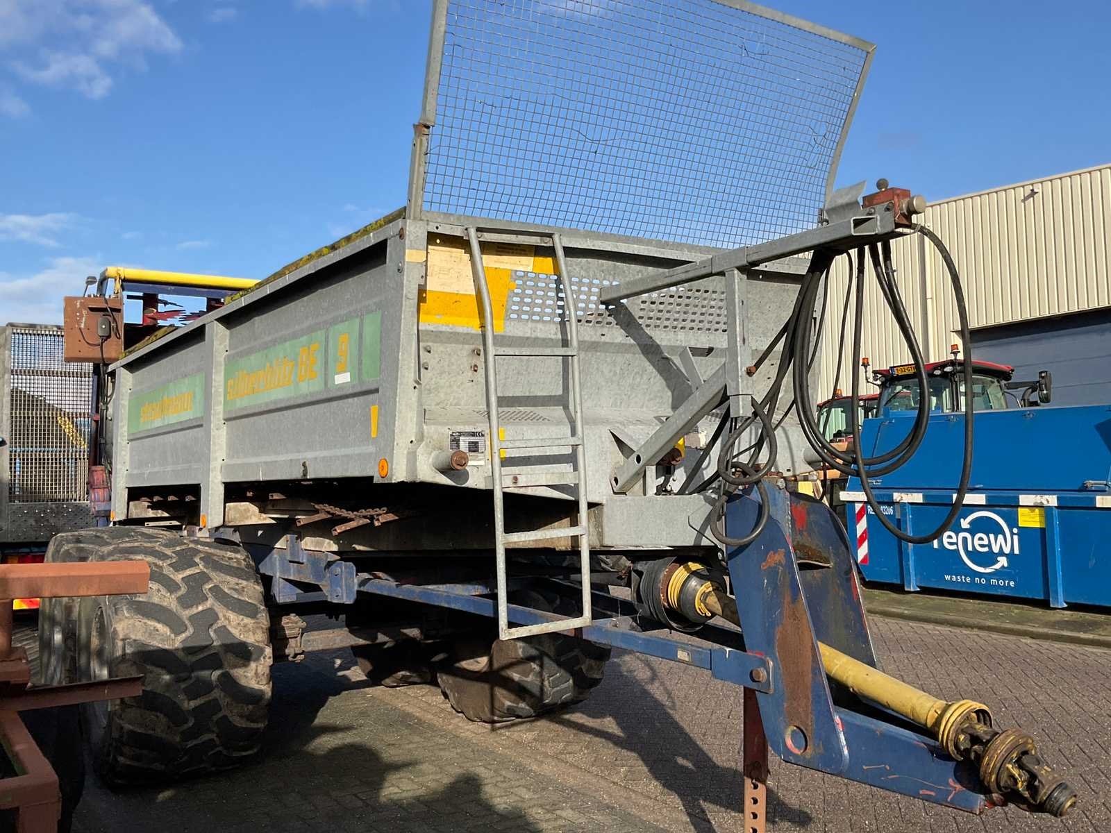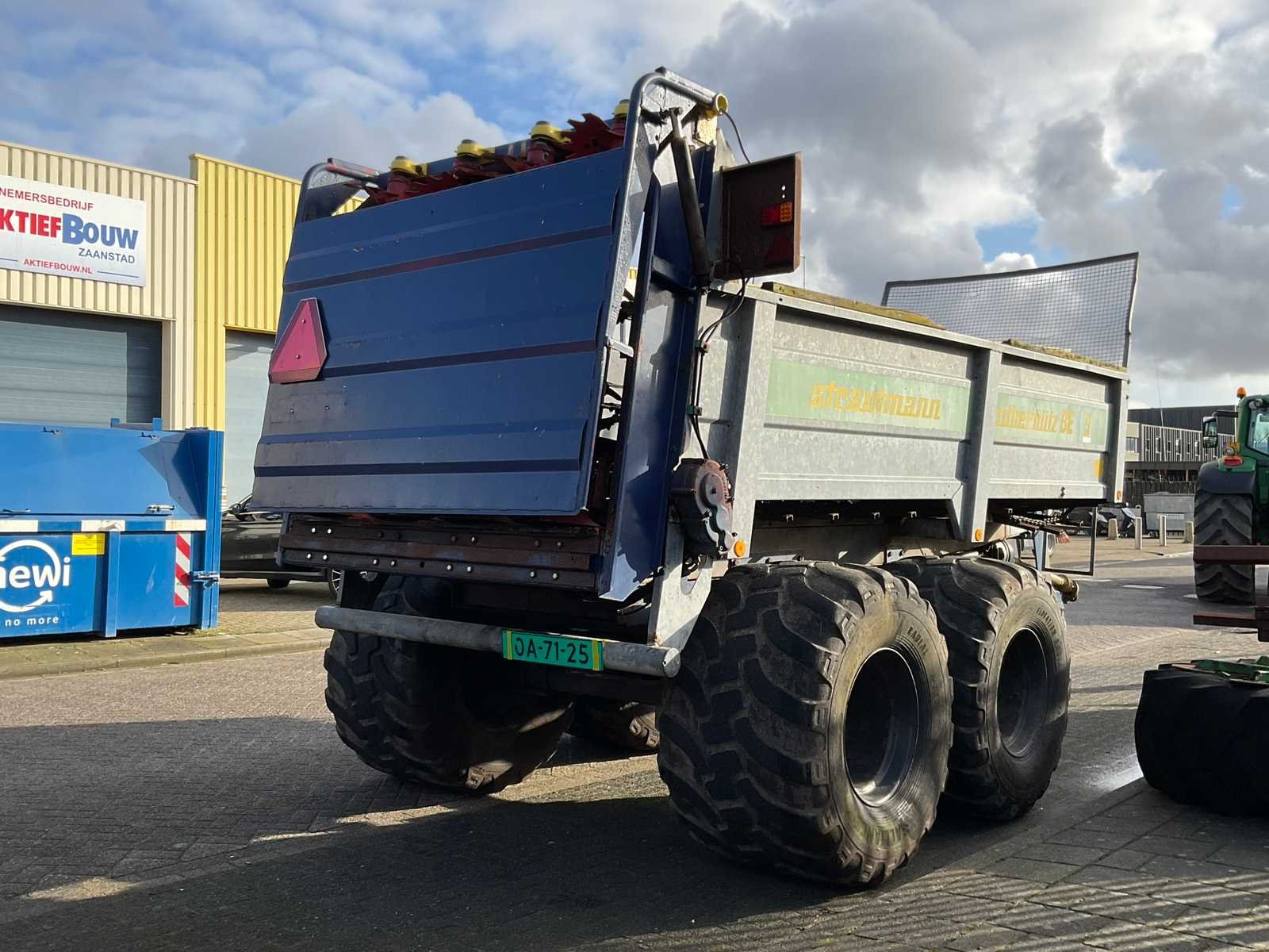 Tandemassig; v.v. 4 verticale walsen; hydraulische bodemketting aandrijving; binnenmaten laadbak 4600x1800 mm; inhoud 10.5 m3; 4 nieuwe veijzels uit 2024 let op, zonder kenteken Merk: Strautmann Type: Silberblitz BE 9 Bandenmaat voor: 750/45R22.5