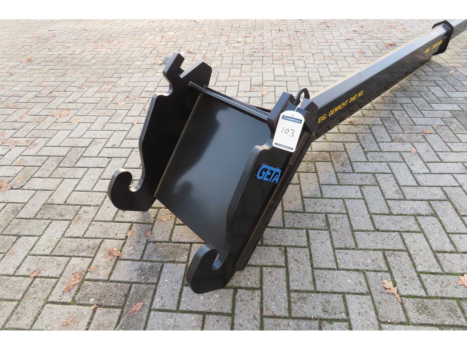 Capaciteit 3000kg; uitschuifbaar tot 500cm; capaciteit uitgeschoven 800kg; CW30 snelwissel Merk: Geta Type: GT500 Bouwjaar: 2024 Eigen gewicht: 340kg Totale afmeting L: 3400mm Totale afmeting Breedte: 800mm Totale afmeting Hoogte: 700mm