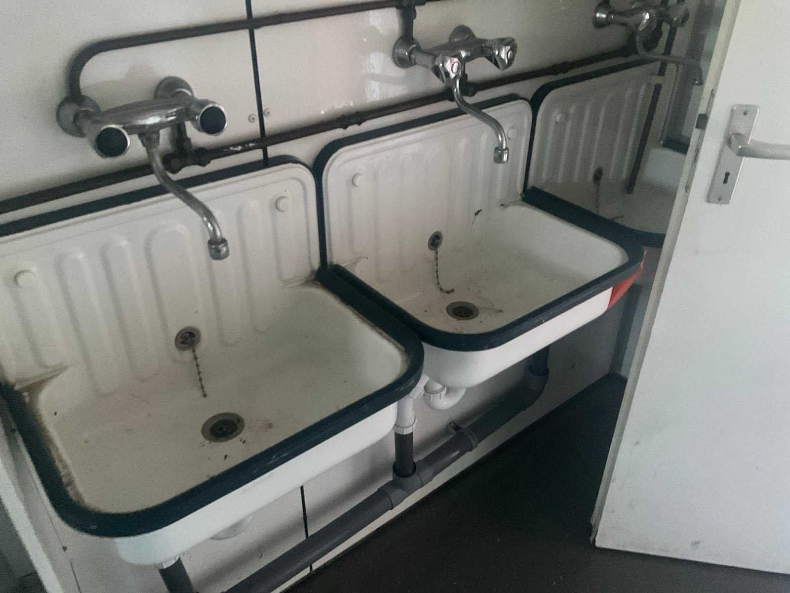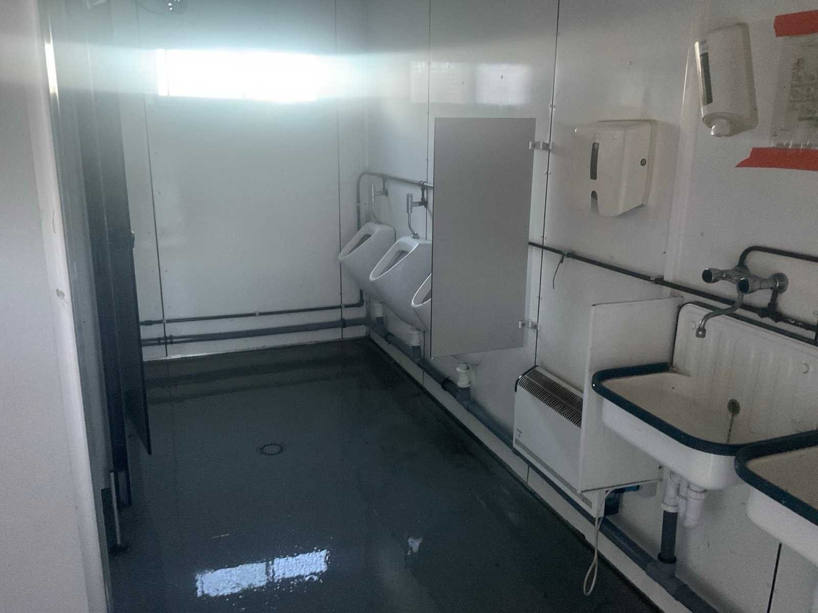 Merk: Buko Type: 6 wt. Afmeting l: 6000mm Afmeting b: 3000mm Afmeting h: 2950mm Aantal ramen: 1 Aantal toiletten: 3 Aantal wastafels: 4