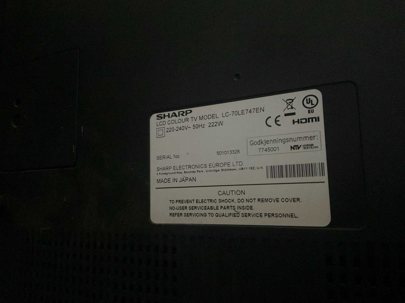 Sharp lcd colour tv model lc-70le747en televisie