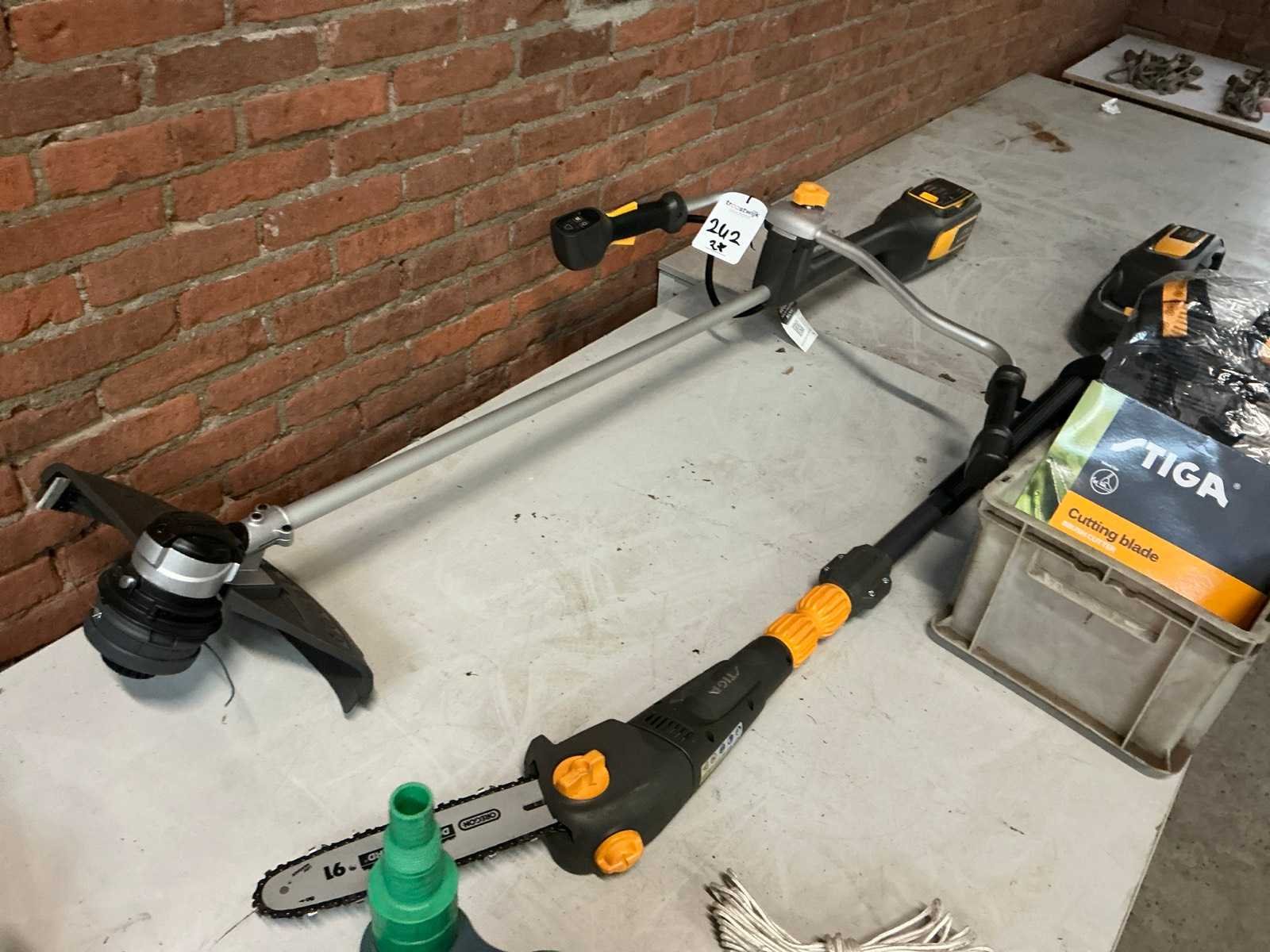 Waarvan 1x accutrimmer en 1x accu verlengde kettingzaag, beide zonder accu, zonder lader Merk: Stiga