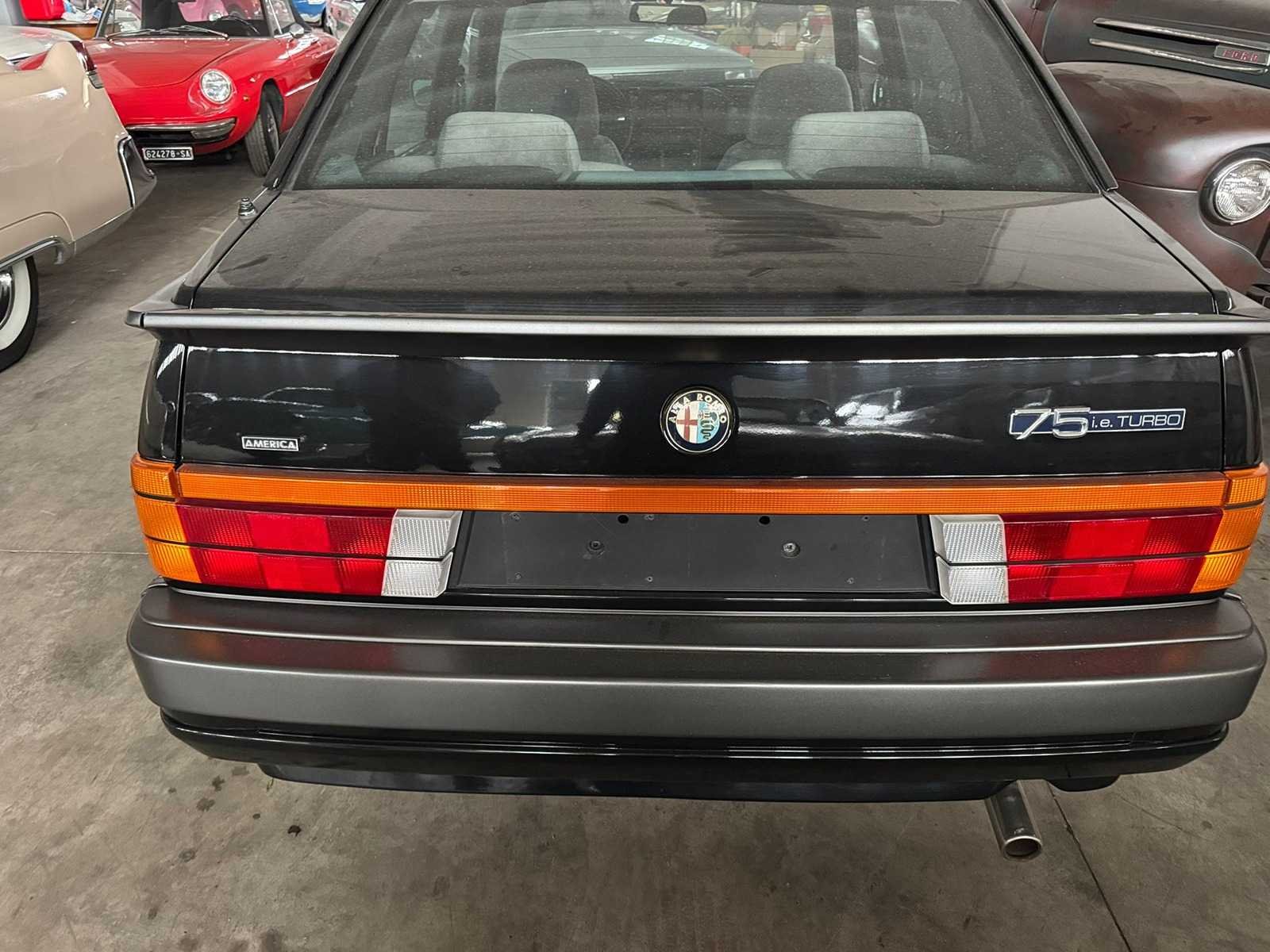 Alfa Romeo 75 1.8 Turbo America – 1988 – Lage kilometerstand – Italiaans kenteken Sportieve en karaktervolle Alfa Romeo 75 1.8 Turbo America uit 1988. Dit model behoort tot de laatste klassieke Alfa Romeo’s met achterwielaandrijving en staat bekend om zijn unieke rijbeleving, transaxle techniek en sterke turbomotor. Uitgevoerd in een stijlvolle donkere kleur met origineel interieur en een kilometerstand van circa 95.000 km. De Alfa 75 Turbo wordt steeds gewilder onder liefhebbers en verzamelaars en heeft een groeiende internationale markt. Voorzien van Italiaans kenteken Merk: Alfa Romeo Type: Turbo America Bouwjaar: 1988 Afgelezen kilometerstand: 95000 Model: 75 Nationaliteit documenten: italiaans Kentekenpapieren compleet?: true Aandrijving: achterwiel Transmissie: handgeschakeld Aantal deuren: 4 Aantal zitplaatsen: 4 Cilinderinhoud: 1800 Aantal cilinders: 4