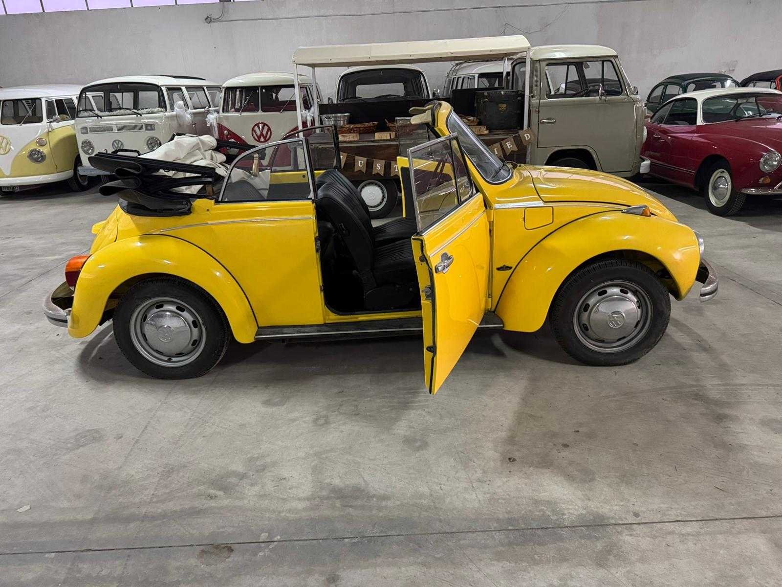 Zeer stijlvolle Volkswagen Kever Cabriolet een iconische en geliefde klassieker. Dit model staat wereldwijd bekend om zijn tijdloze design, betrouwbare techniek en sterke vraag onder verzamelaars en liefhebbers. Uitgevoerd in een opvallende gele kleur met zwart interieur en cabriodak. De auto verkeert in nette en verzorgde staat en heeft een frisse en sportieve uitstraling. Zeer geschikt voor liefhebbers, evenementen, verhuur of als investering. De Volkswagen Kever Cabriolet wordt internationaal steeds populairder en heeft een sterke markt in Europa en daarbuiten. Voorzien van Italiaans kenteken. Merk: Kever Type: Cabriolet Bouwjaar: 1975 Afgelezen kilometerstand: 13171 Brandstof: benzine Nationaliteit documenten: italiaans Kentekenpapieren compleet?: true Transmissie: handgechakeld Aantal deuren: 2 Aantal zitplaatsen: 4 Aantal sleutels: 2 Cilinderinhoud: 1.3 Aantal cilinders: 4